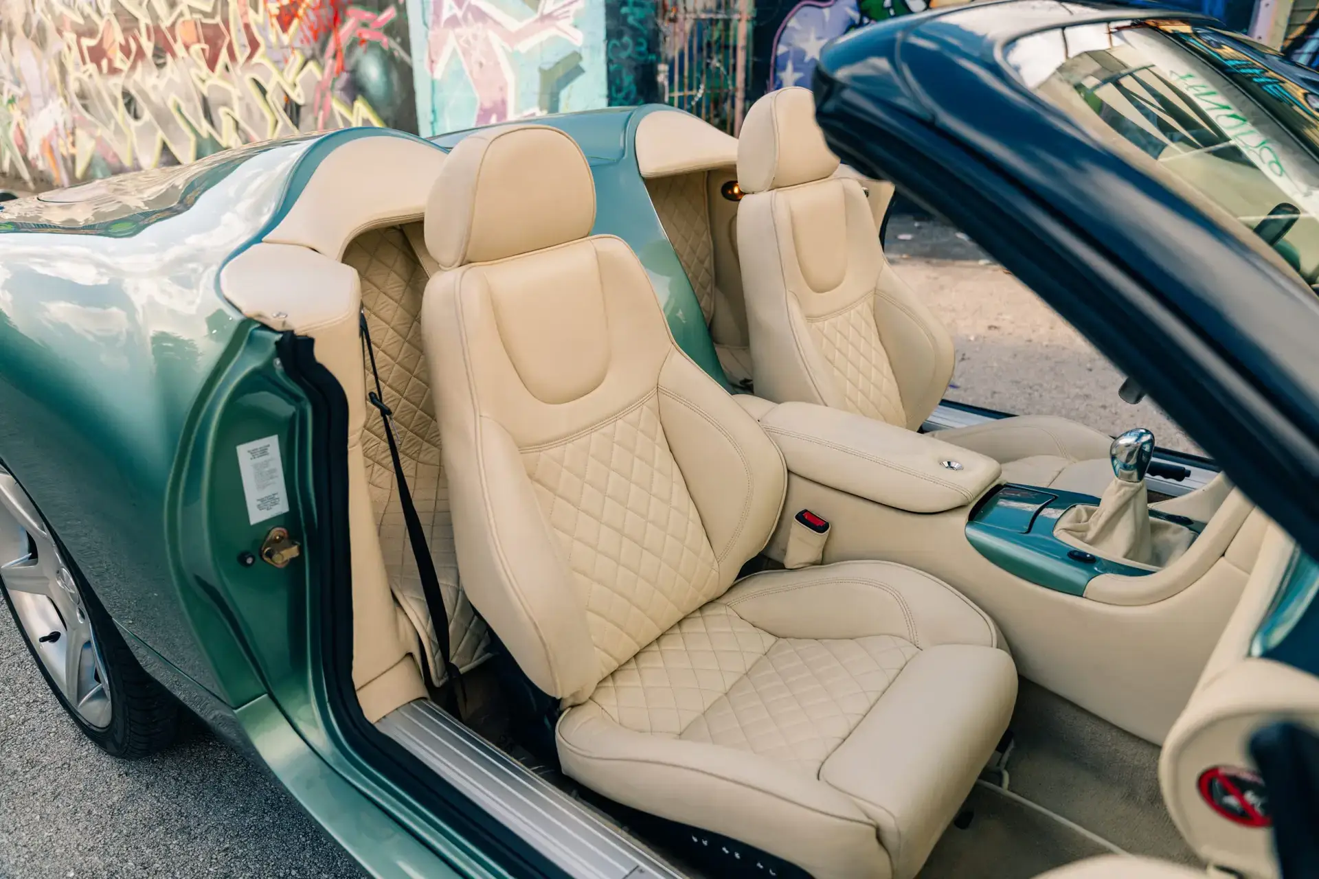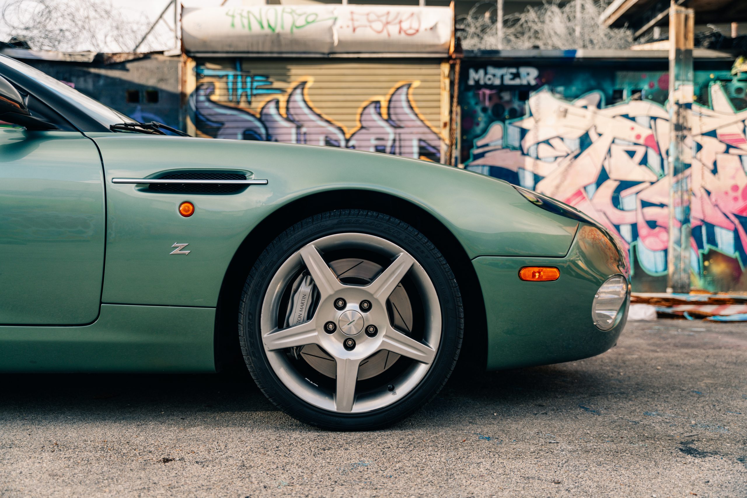The Aston is powered by an upgraded ‘GT’ version of the V12, which produces power up to 435 bhp and torque to 410 lb ft. Coming with an active sports exhaust system with rear muffler by-pass valves, as used on the V12 Vanquish, provided the DB AR1 with a very distinctive exhaust note and an enjoyable amount of speed. The DB AR1 is also fitted with the DB7 GT quick-shift gear lever for shorter changes, and special multi-spoke 19″ alloy wheels. Braking, supplied through Brembo discs as well as an up-rated brake booster unit as used on the V12 Vanquish, allowed for a firmer and more consistent pedal feel and feedback.