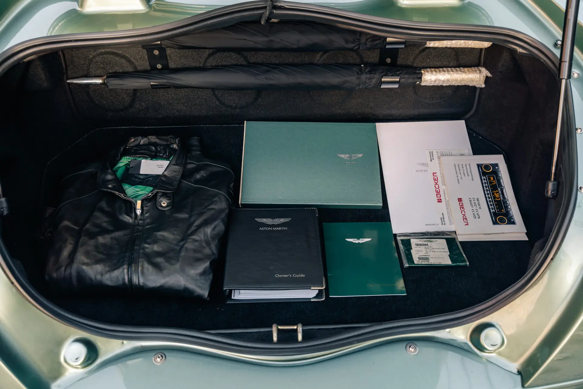 Amazingly, the DB AR1 still retains its accompanying Aston Martin custom leather jacket, coffee table book, both umbrellas and books and tools. It is increasingly hard to find these cars with everything still with the car. This example is in superb condition and would be a fine addition to any discerning collection to be shown on a concours lawn or enjoyed as the first owner did in the last two months of ownership