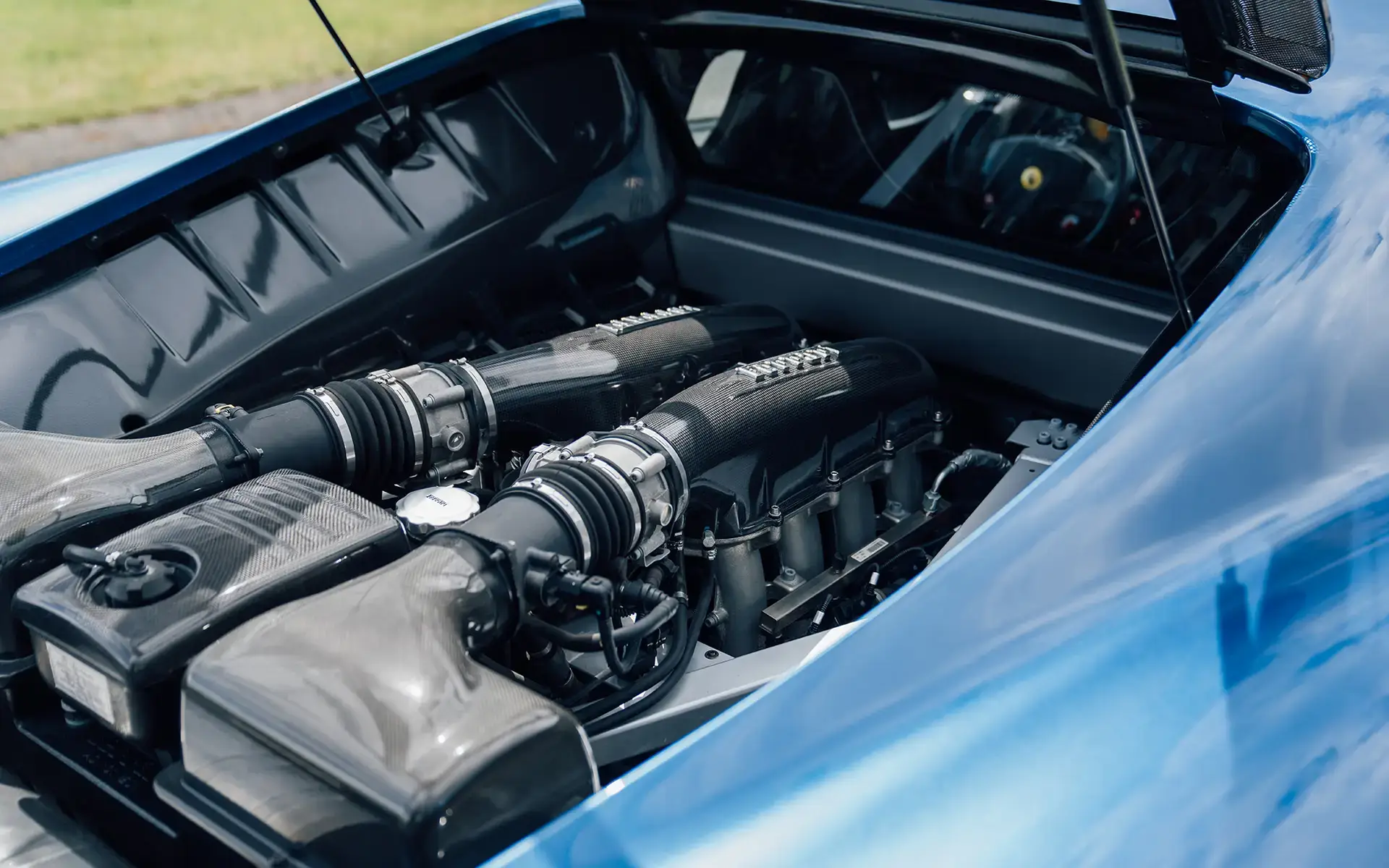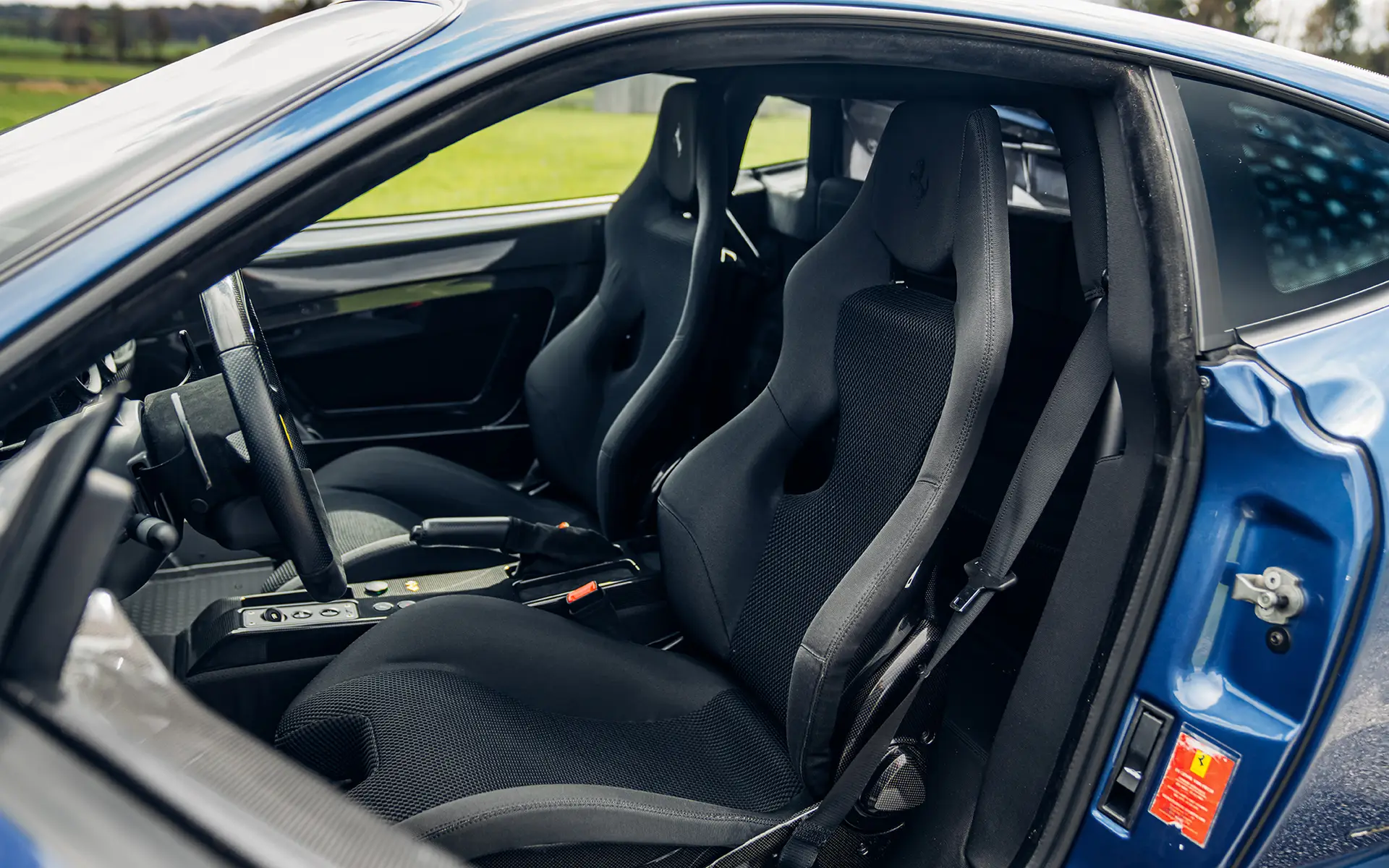 Our Scuderia is finished in the extremely rare and stunning color of Blu Mirabeau, believed to be one of two finished in this shade of blue. The Ferrari was delivered new through Formula Automobile AS in Denmark in January of 2009 to a resident in Sweden. The 430 would stay in his possession until at least 2012, when the car was serviced at the delivery dealer in August of that year. It would then change hands and get registered in the Netherlands, where it was serviced in 2016 at 10,476km by official Ferrari dealer Munsterhuis Sportscars B.V. and again in 2022 at 11,078km by official Ferrari dealer Kroymans Automotive. Quite a lot has been invested in the car in 2023 where the Scuderia received new front brake discs and pads for the total cost of roughly 7,000 Euros. The paint thickness tool shows that every metal panel on the car is in original paint, and thanks to the extremely rare color, low mileage, and maintenance history, this is a rare collector-grade Scuderia. Currently displaying less than 11,600km from new. New Michelin Pilot Sport Cup 2 tires were mounted in July 2023.
