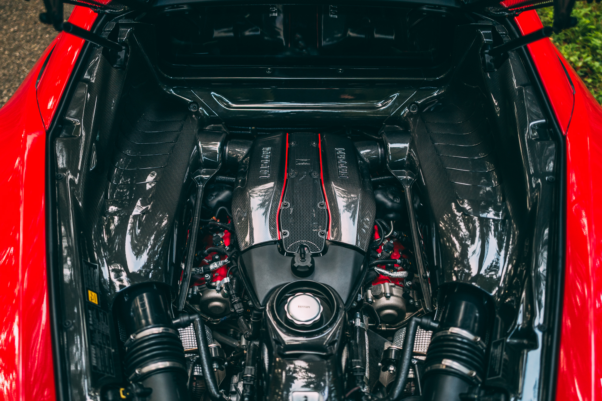 Inside, the cabin is trimmed in black Alcantara with extensive carbon-fibre components. A tricolore stripe runs across the driver’s seat, dashboard, and steering wheel—echoing the Italian flag motif of Ferrari’s factory race cars and emphasizing its connection to the brand’s GT racing division.