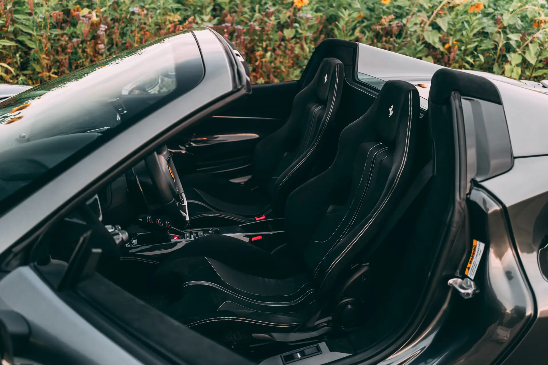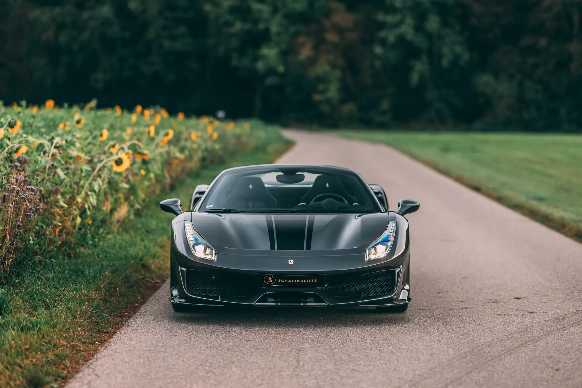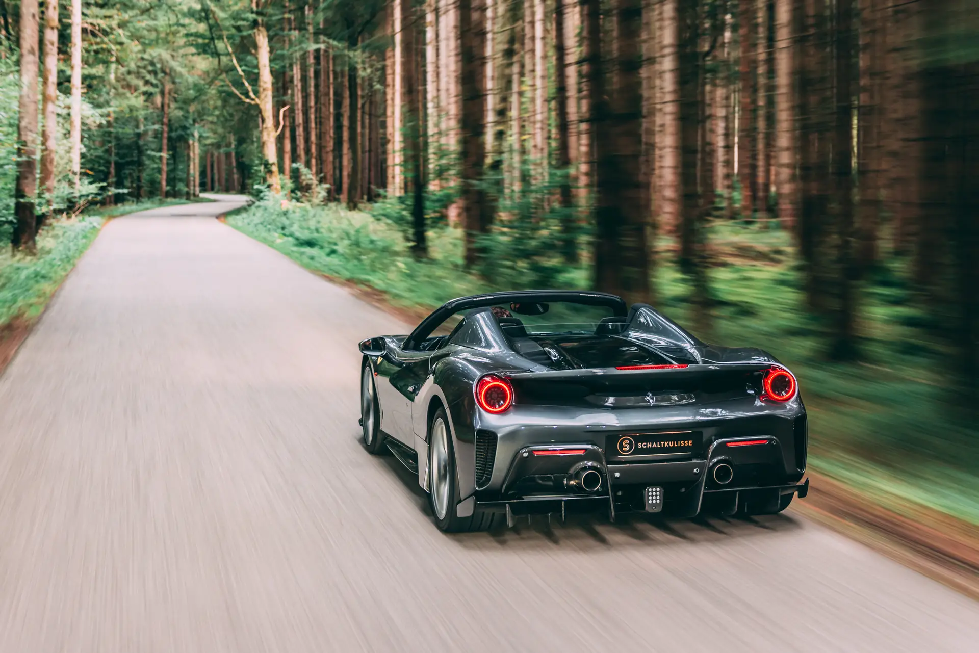 The example on offer was delivered through Gohm Singen in November 2020 to its first owner from Switzerland. Finished in the attractive color combination of Grigio Silverstone with extended racing livery in Nero Daytona and Nero Alcantara interior. Every single carbon fiber option was selected on the order sheet, finishing off the build with Grigio Chiaro stitching in the interior, and making this one of the best looking Pista Spiders we have ever seen. On German papers and located here with us in Germany, the odometer shows 6,000km from new. The Ferrari is VAT-qualified and can be bought at Netto price for export.