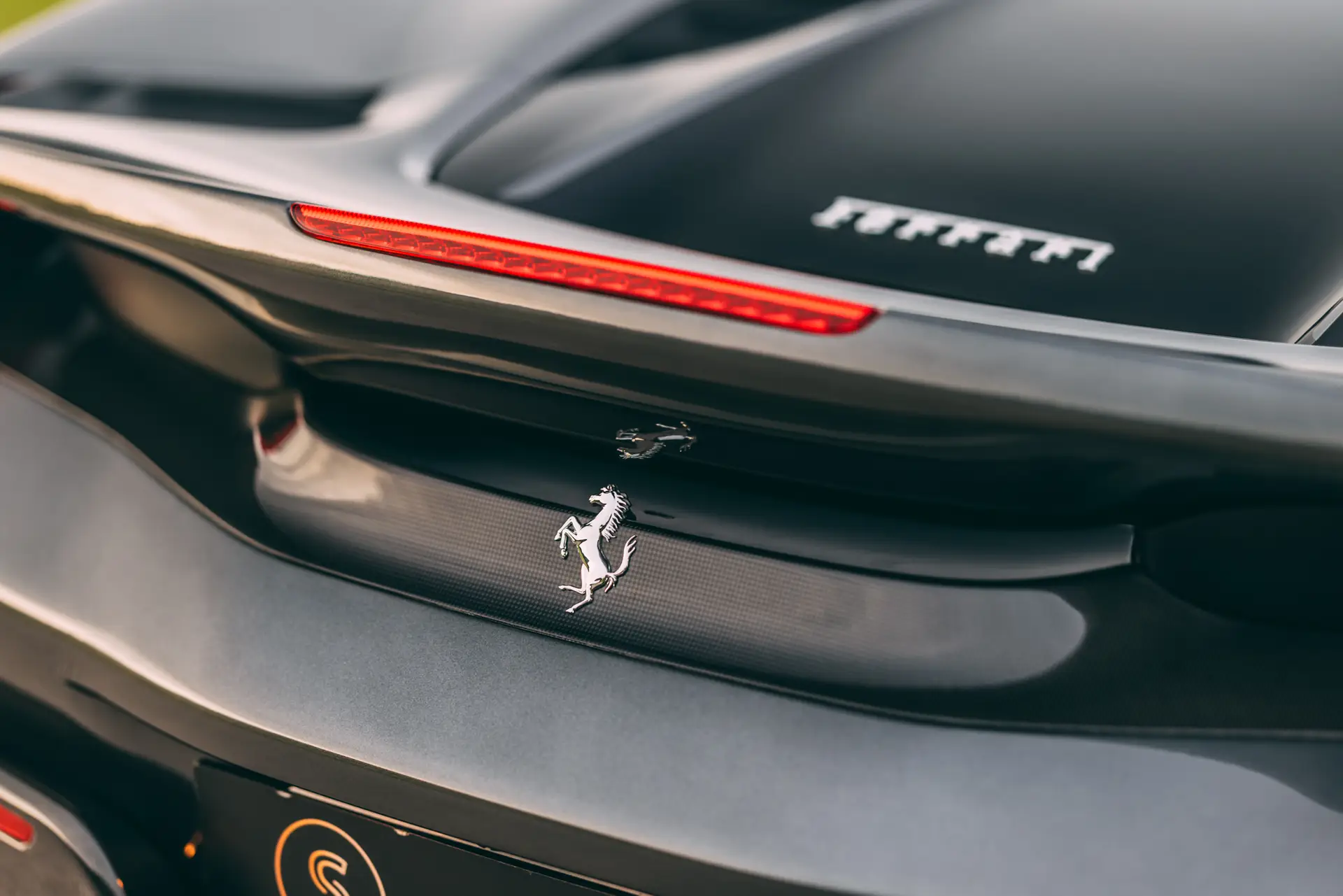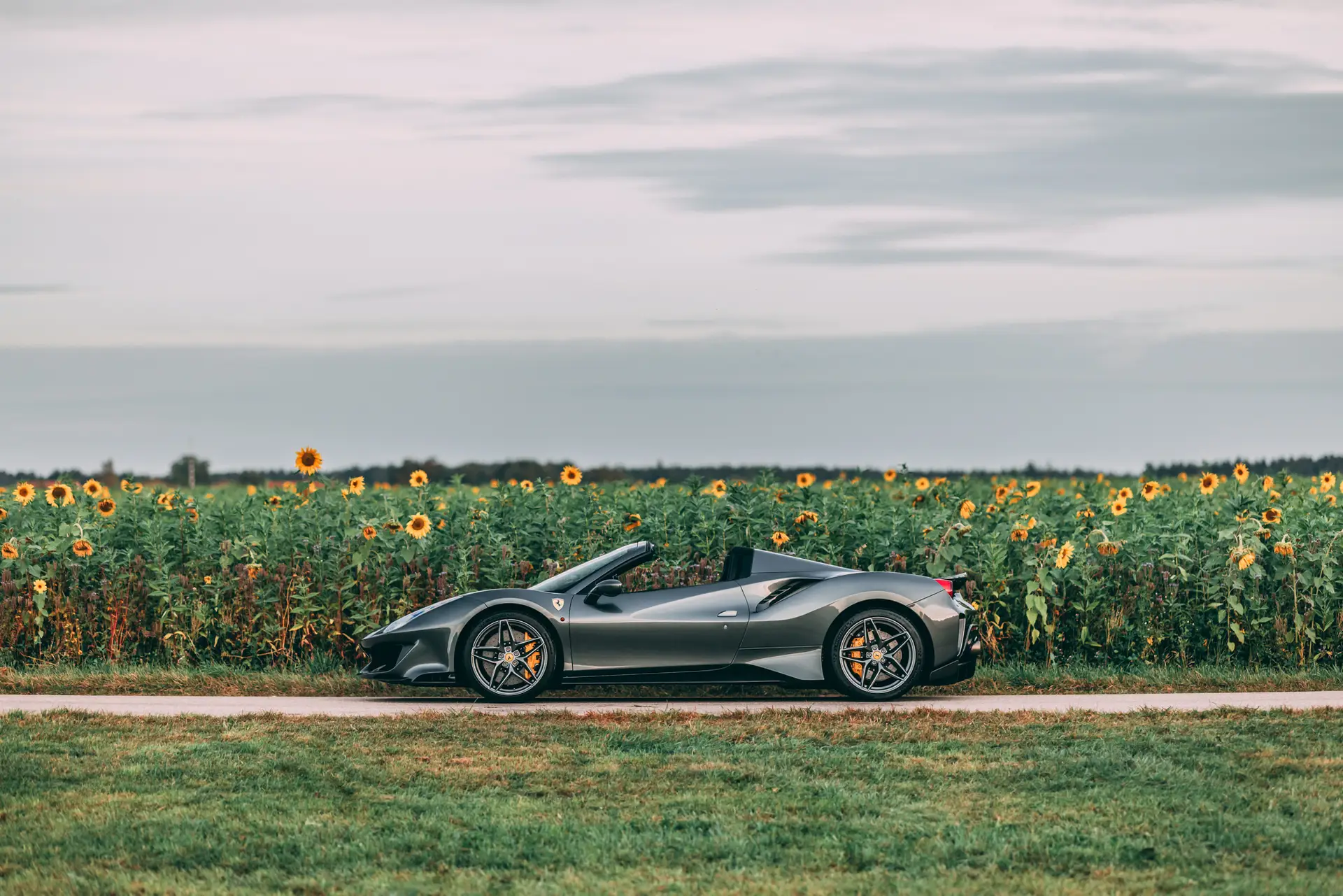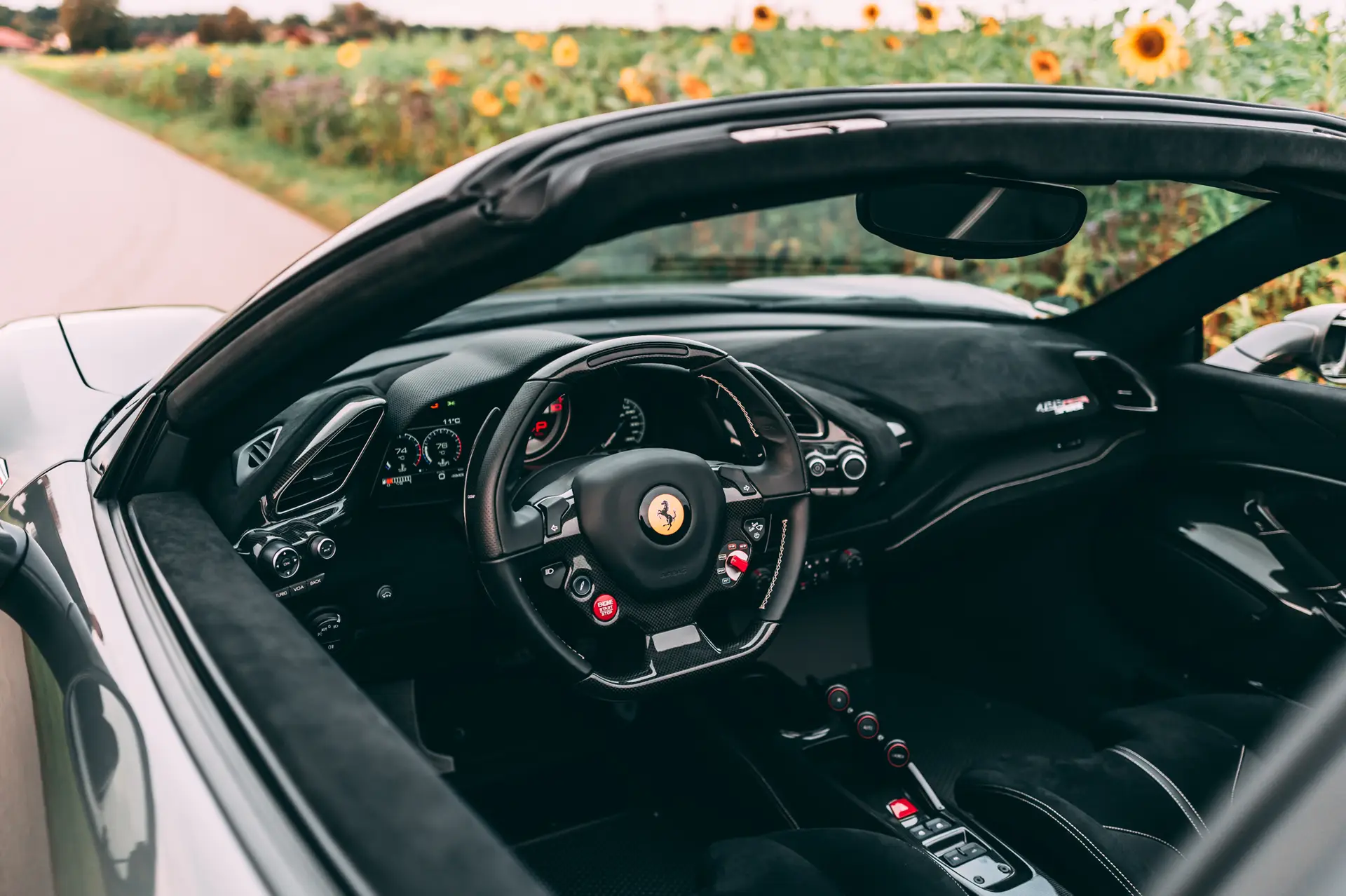 The example on offer was delivered through Gohm Singen in November 2020 to its first owner from Switzerland. Finished in the attractive color combination of Grigio Silverstone with extended racing livery in Nero Daytona and Nero Alcantara interior. Every single carbon fiber option was selected on the order sheet, finishing off the build with Grigio Chiaro stitching in the interior, and making this one of the best looking Pista Spiders we have ever seen. On German papers and located here with us in Germany, the odometer shows 6,000km from new. The Ferrari is VAT-qualified and can be bought at Netto price for export.
