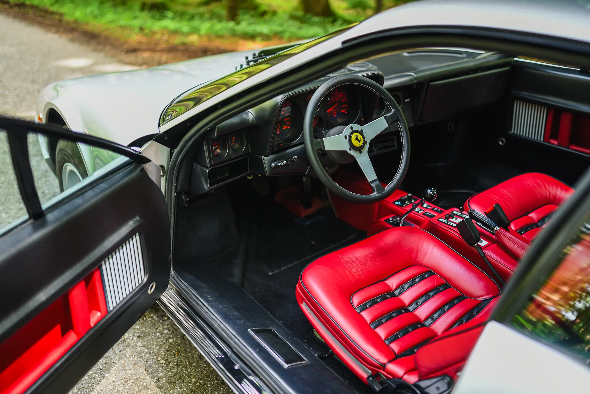 This represents an opportunity to own a collector-grade Ferrari from the 70’s in a condition that can only be described as better than new. The Boxer Berlinetta’s have always been fantastic cars, especially the ones with the caruberettors, such as the example presented here. Being an original Argento 512 BB, this must be one of a handful cars that left the factory in this shade, without the black lower trim. The BB can be inspected on appointment at our showroom in the outskirts of Taufkirchen.