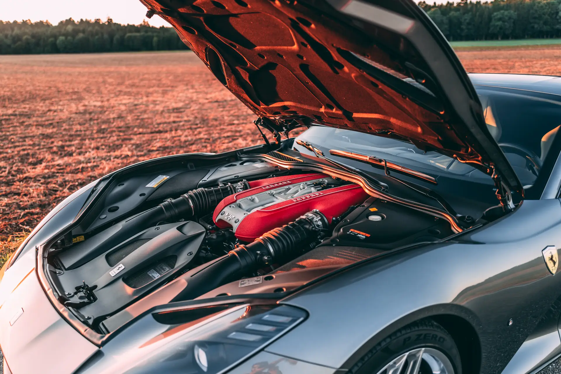 The successor of the successful F12 Berlinetta, the 812, was presented at the 2017 Geneva Motor Show. It is until this moment and in its different variants, the most recent two-seater, front-engined V12 car from Ferrari. Under its bonnet is a 6.5 liter V12 delivering 785 horsepower, sending the car to 100 km/h in 2.8 seconds. So powerful in fact that journalists deemed it too fast for the road.