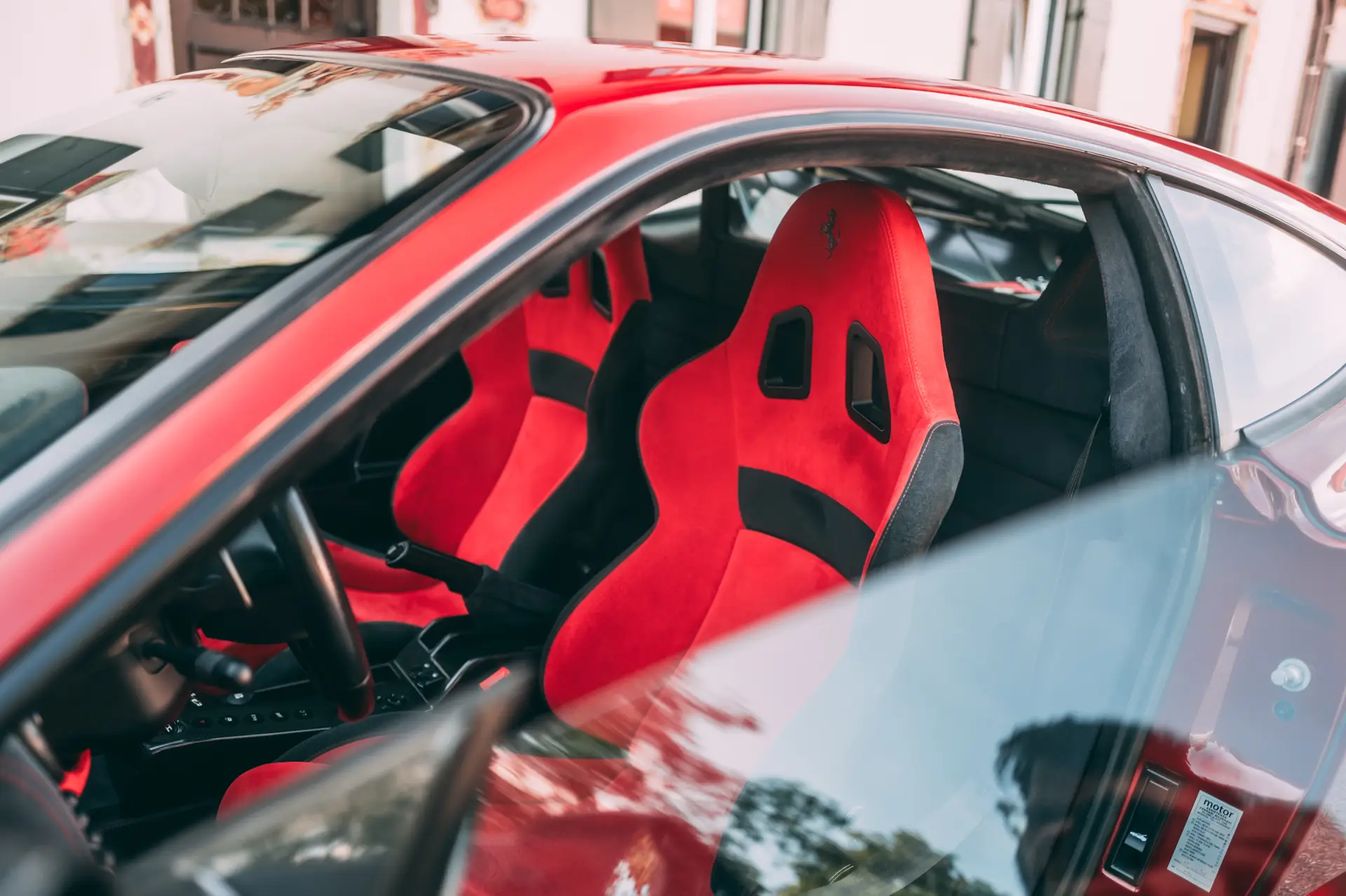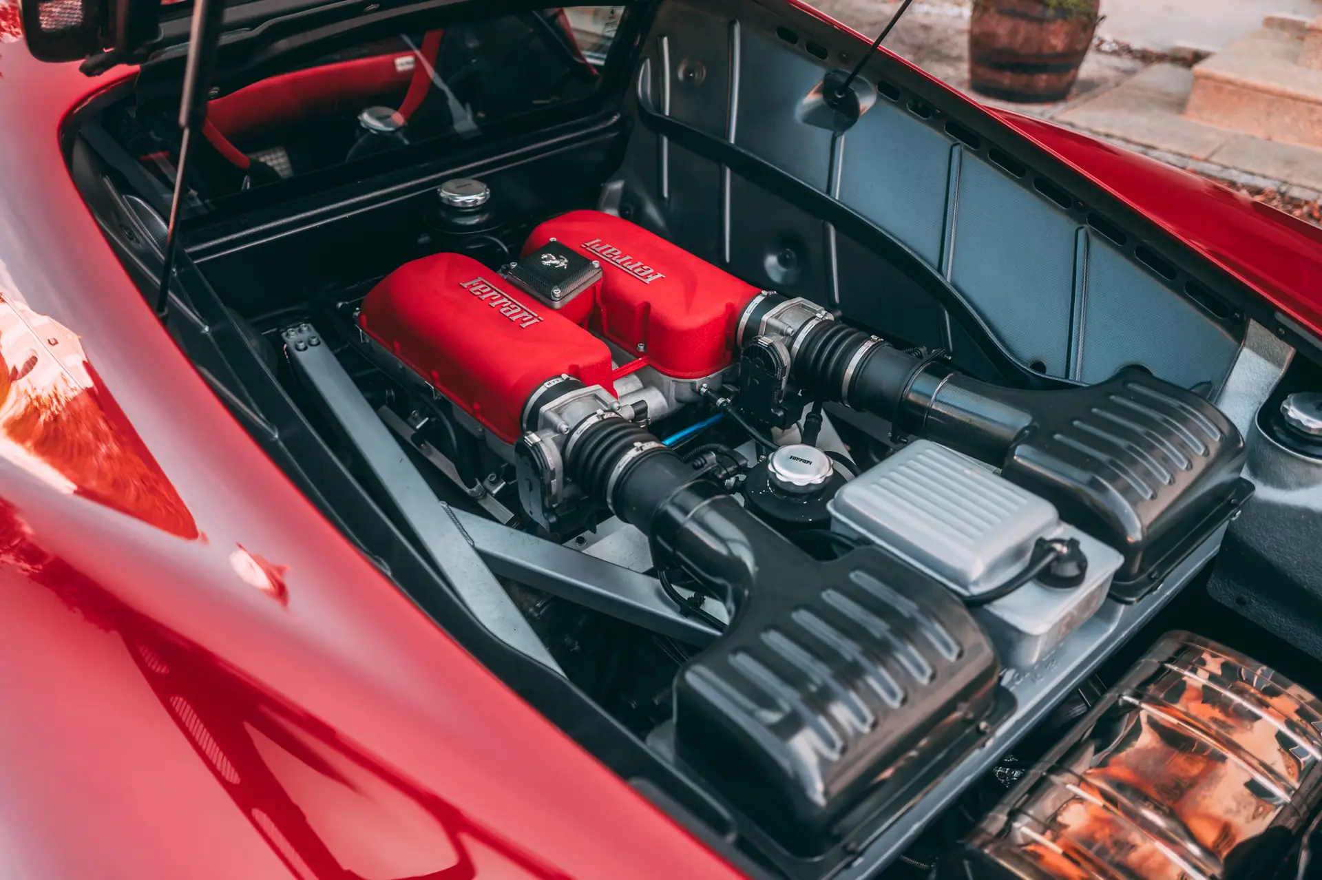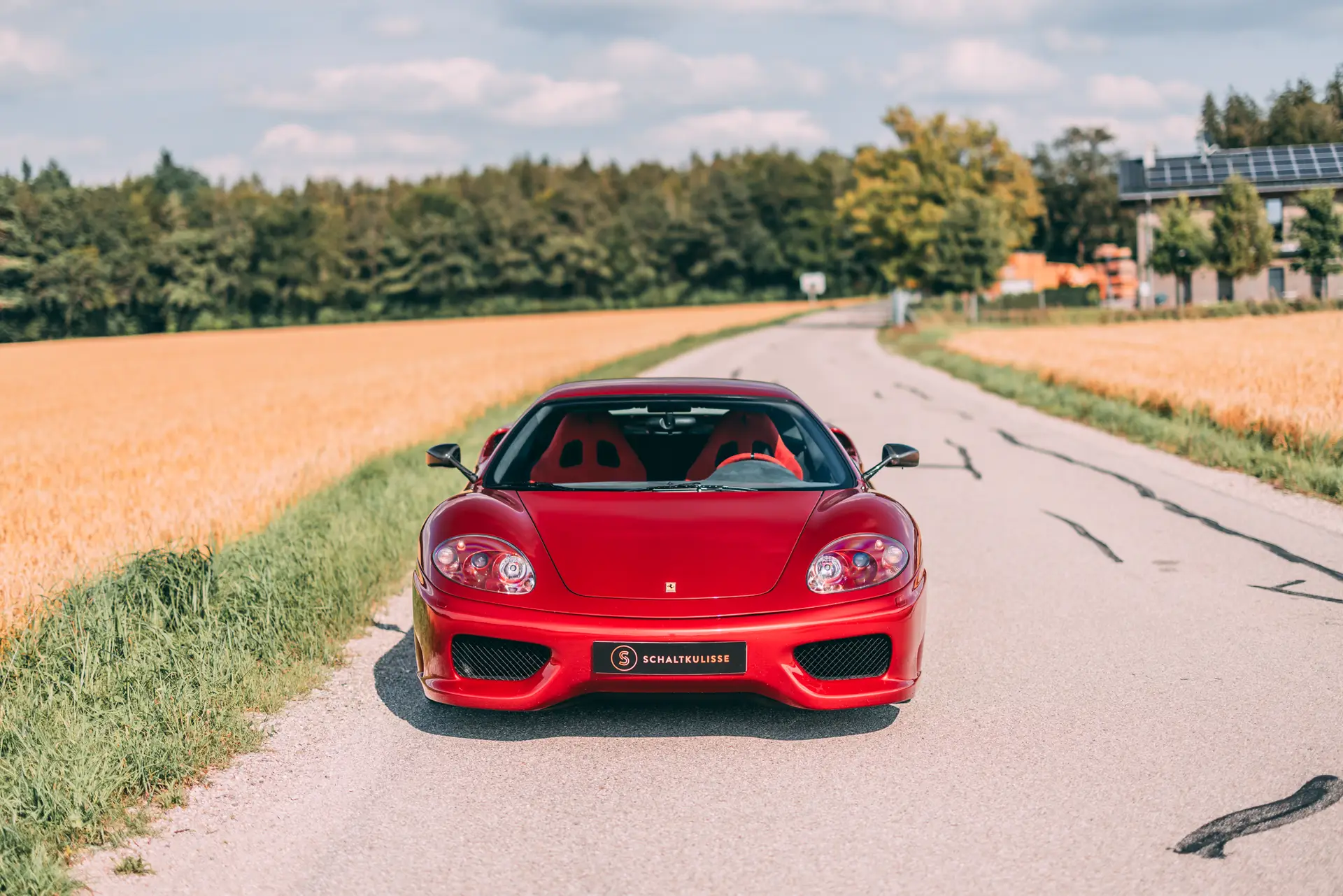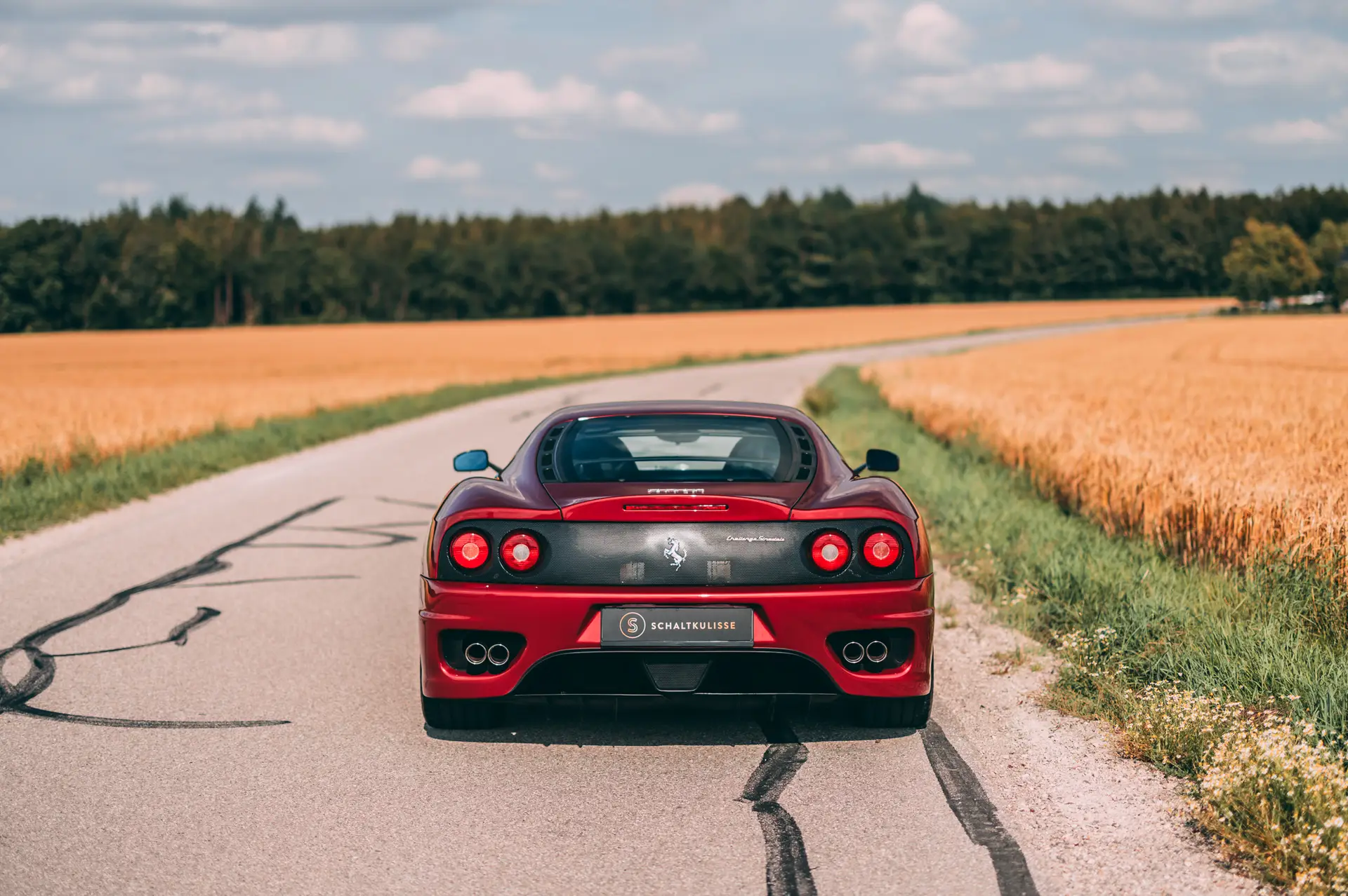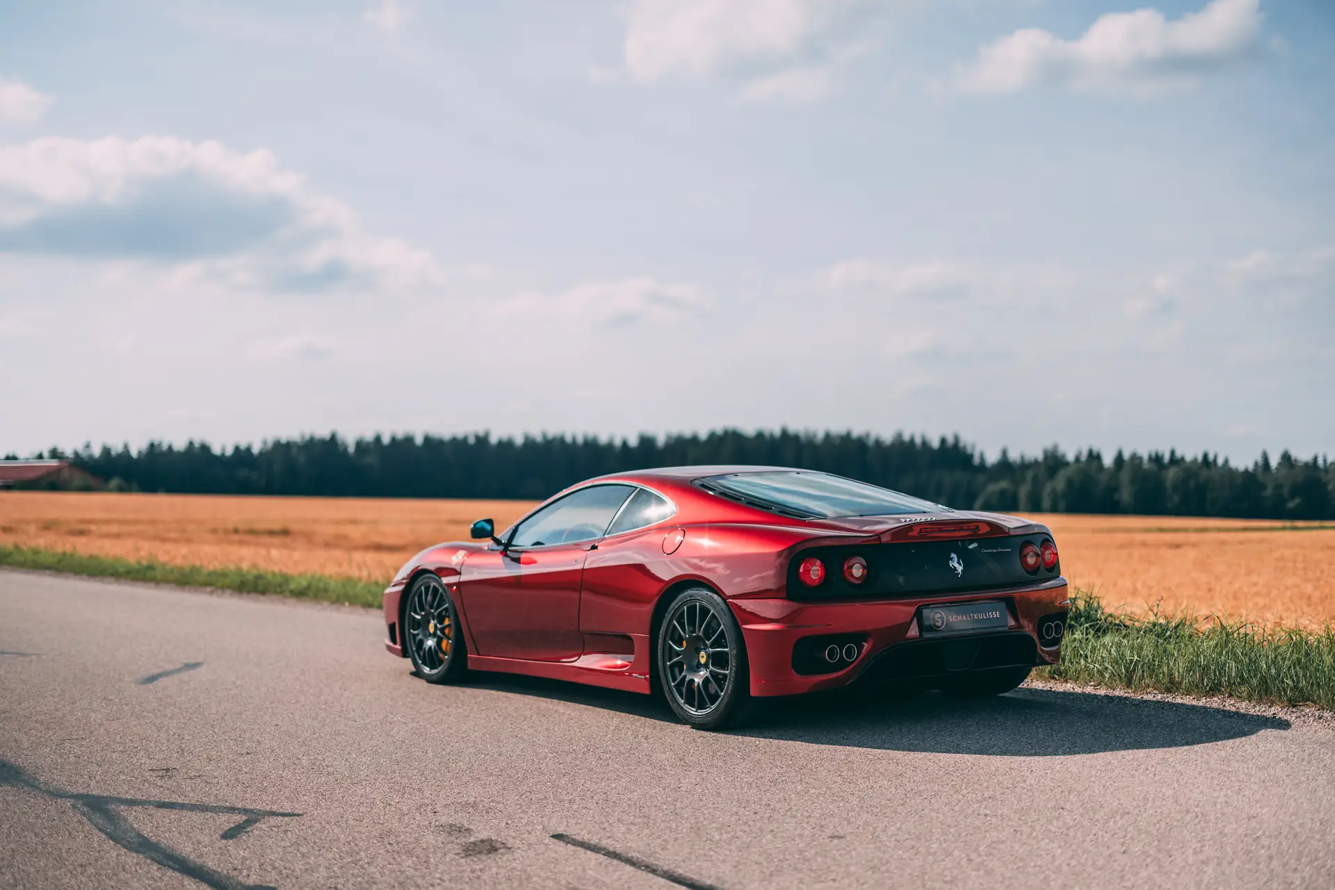 Our Challenge Stradale was delivered new by Ferrari Gohm in Singen, Germany, on the 6th of December 2003, to its first German owner, resident in Jettingen. The Ferrari was specified in the very rare color of Rosso Fiorano, a stunning shade of dark metallic red, over a red and black Tessuto interior. According to the Challenge Stradale registry, only four Challenge Stradale were made in Rosso Fiorano, making it an incredibly rare specification. The Challenge Stradale enjoyed time in Germany, Italy, and Monaco before coming back to Germany, having had an owner in Berlin and for the past two years now in the region of Munich. The Ferrari has always been well maintained and cared after, with the following services stamped on the original Tessera di Garranzia: