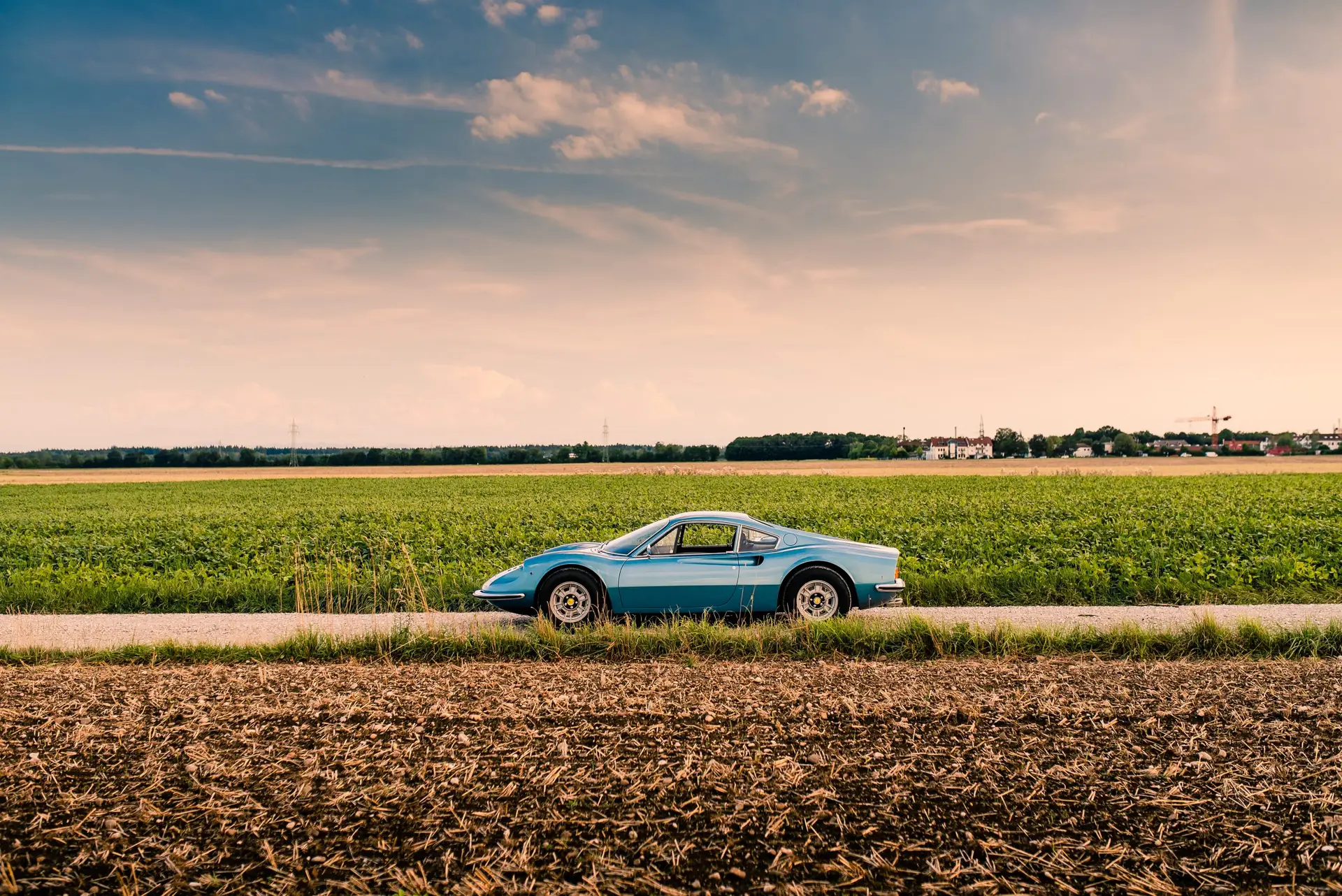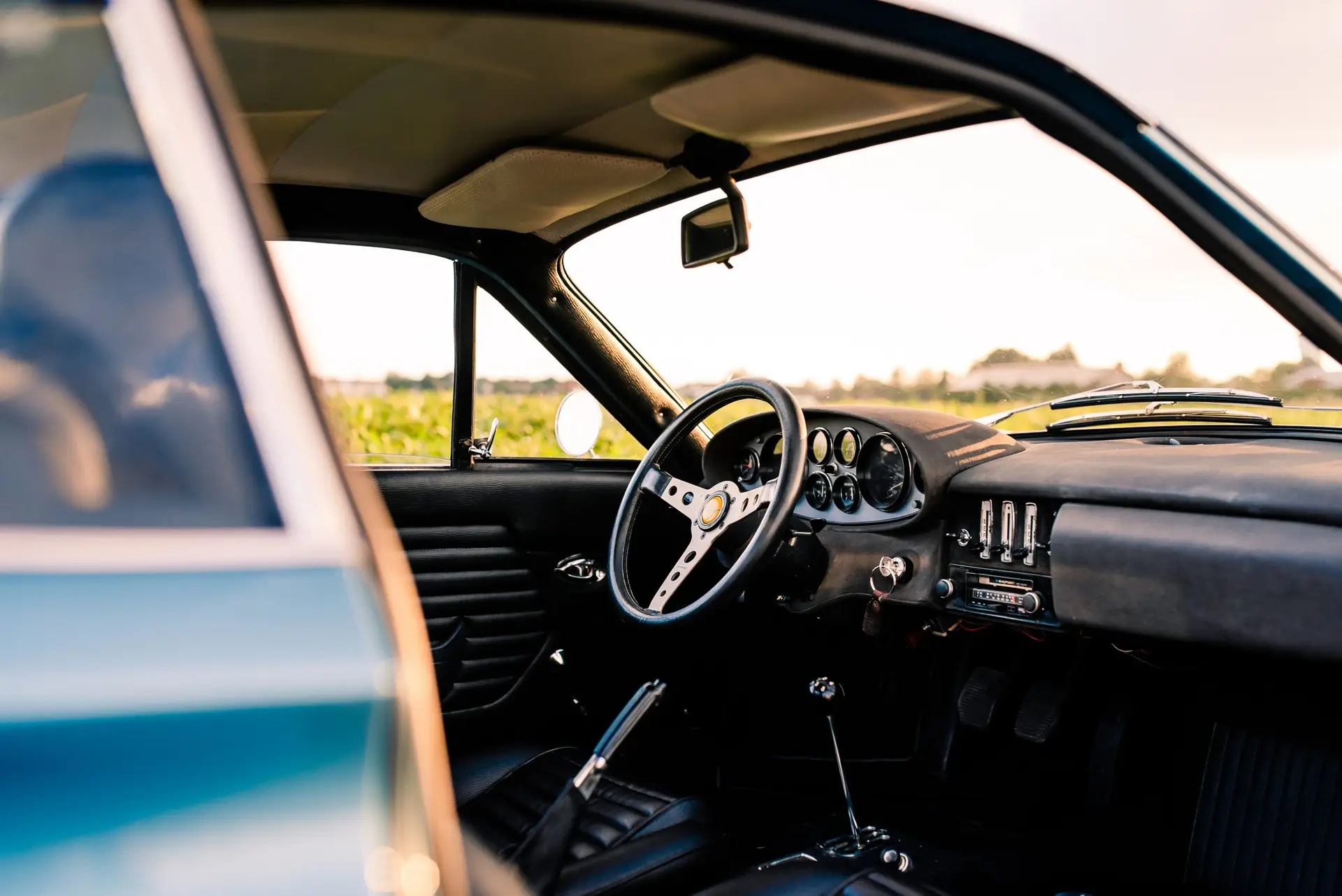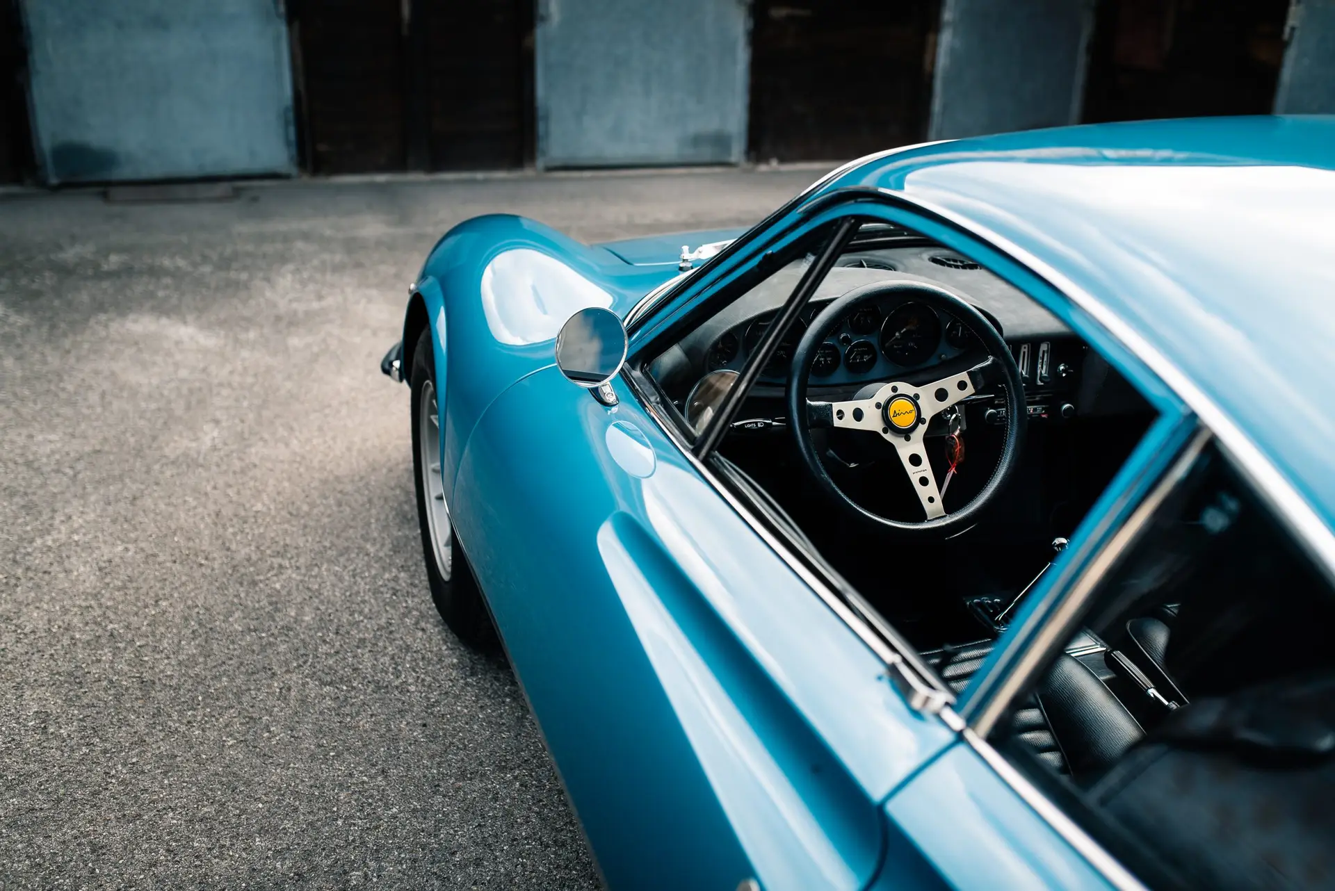 This Dino chassis #01784 has a special story to tell. It is one of only 52 cars to be delivered in Blu Chiaro Metallizzato. The first owner was Maria Angela De Sist, from Cesena, Italy. The car was first registered on 16.04.1971 in Bologna, with the number plate FO234368. Until the end of 1976, #01784 stayed in Italy, then crossed the pond to the USA. It subsequently stayed with the same owner in California for forty years (1977 – 2017). At the end of the 1970s, this owner decided to have it repainted red, as they liked red Ferraris and the original finish had somewhat worn out. The car stayed red until we bought it at the end of 2017. The owner of the car over four whole decades had many wonderful stories, exuding passion for his beloved car. This personal connection lends the car special charisma.