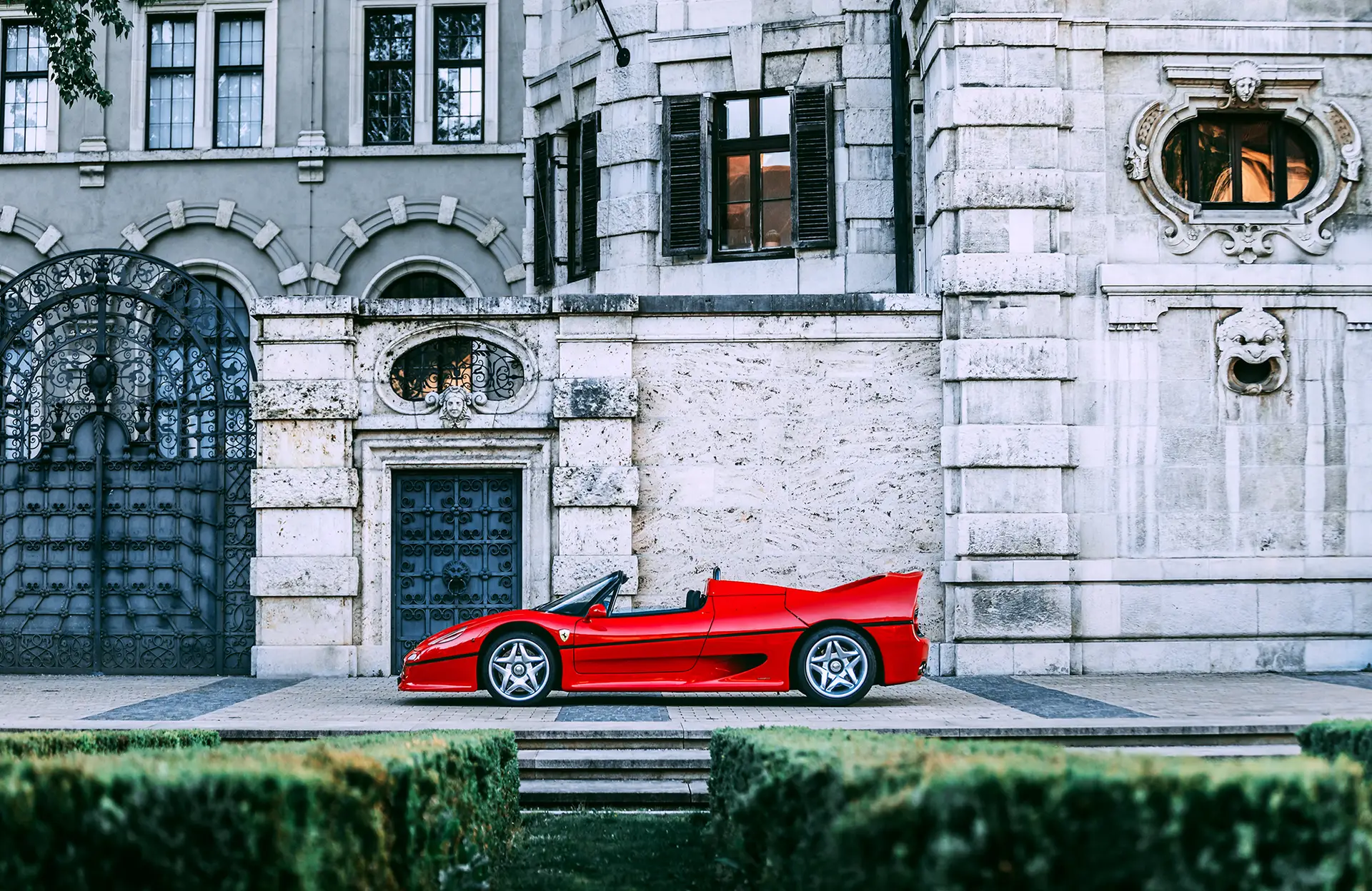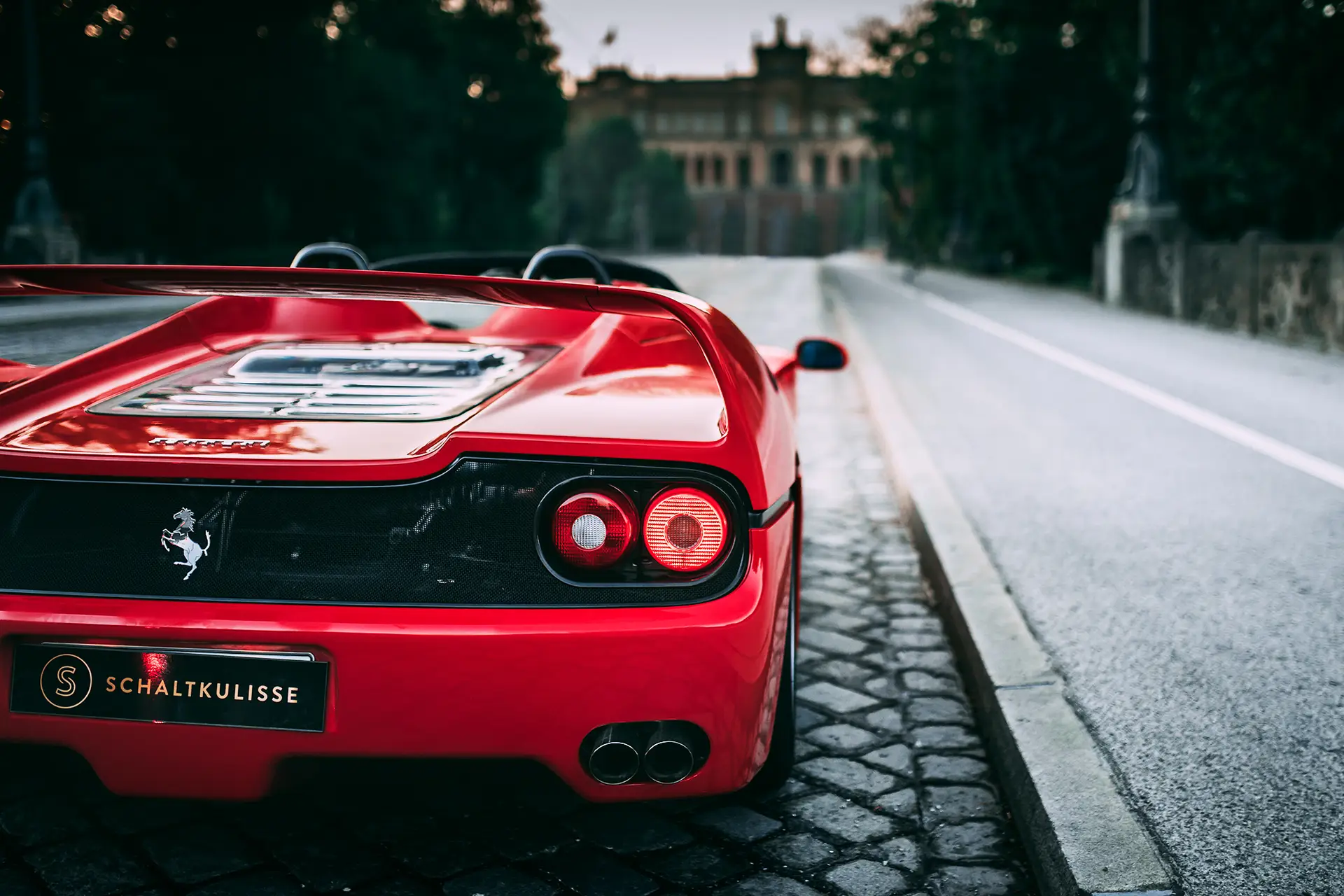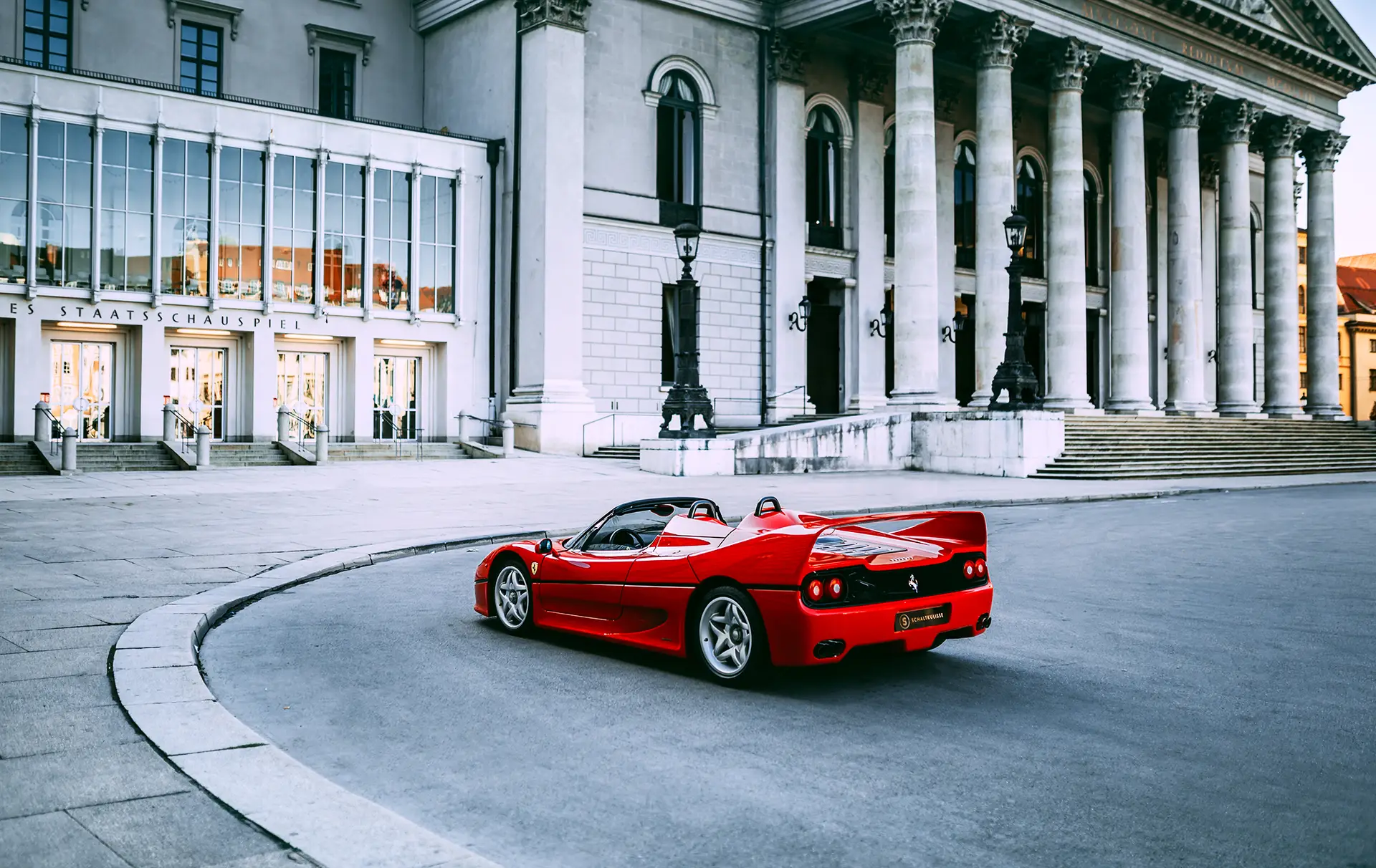 Our F50 in classic rosso corsa and black interior was first sold by the Autohaus Ulrich, Frankfurt, on 20.06.1996. After chassis #105081 had spent its early years in Germany with its first owner, it found its way to England. From 2005, it was regularly serviced by Graypaul, the official Ferrari dealer in Nottingham. Many receipts document the extent of the regular maintenance work. In 2016, the car returned to Germany, as part of a renowned collection of historic and modern Ferraris of different periods. The new owner will be able to enjoy going some distance with this icon of the 1990s – without fear of immediately depreciating its value, for it currently has just 22 440 km on the speedometer. The low mileage and meticulous care from previous owners (particularly the most recent) mean it enjoys an exceptional overall condition. The finish is beautifully kept, its evidently carbon structure protected by a transparent PPF stone splinter protection film. The original vehicle document folder, logbook and a Classic Ferrari Certificate are supplied, as are the complete set of keys and the hardtop box.