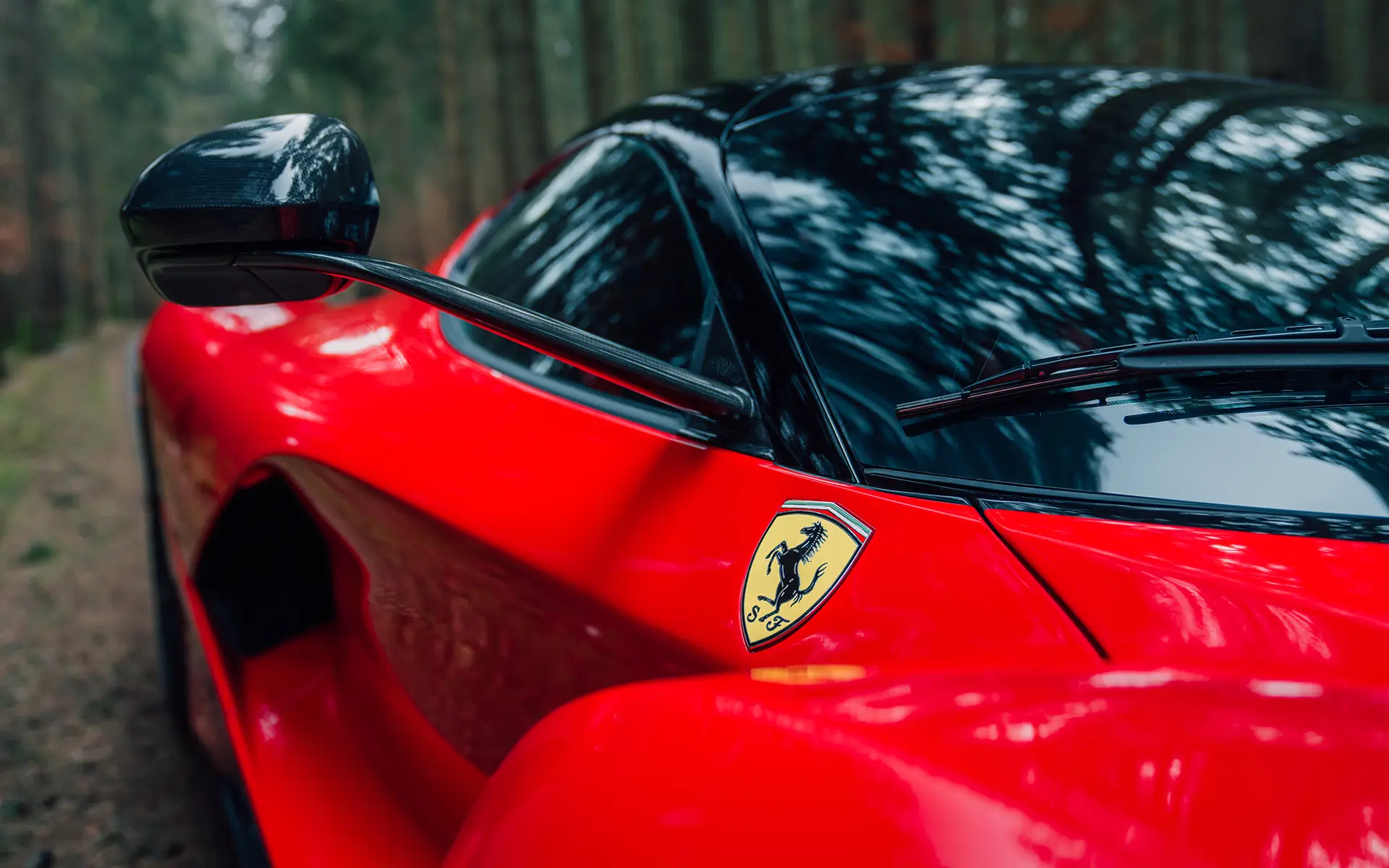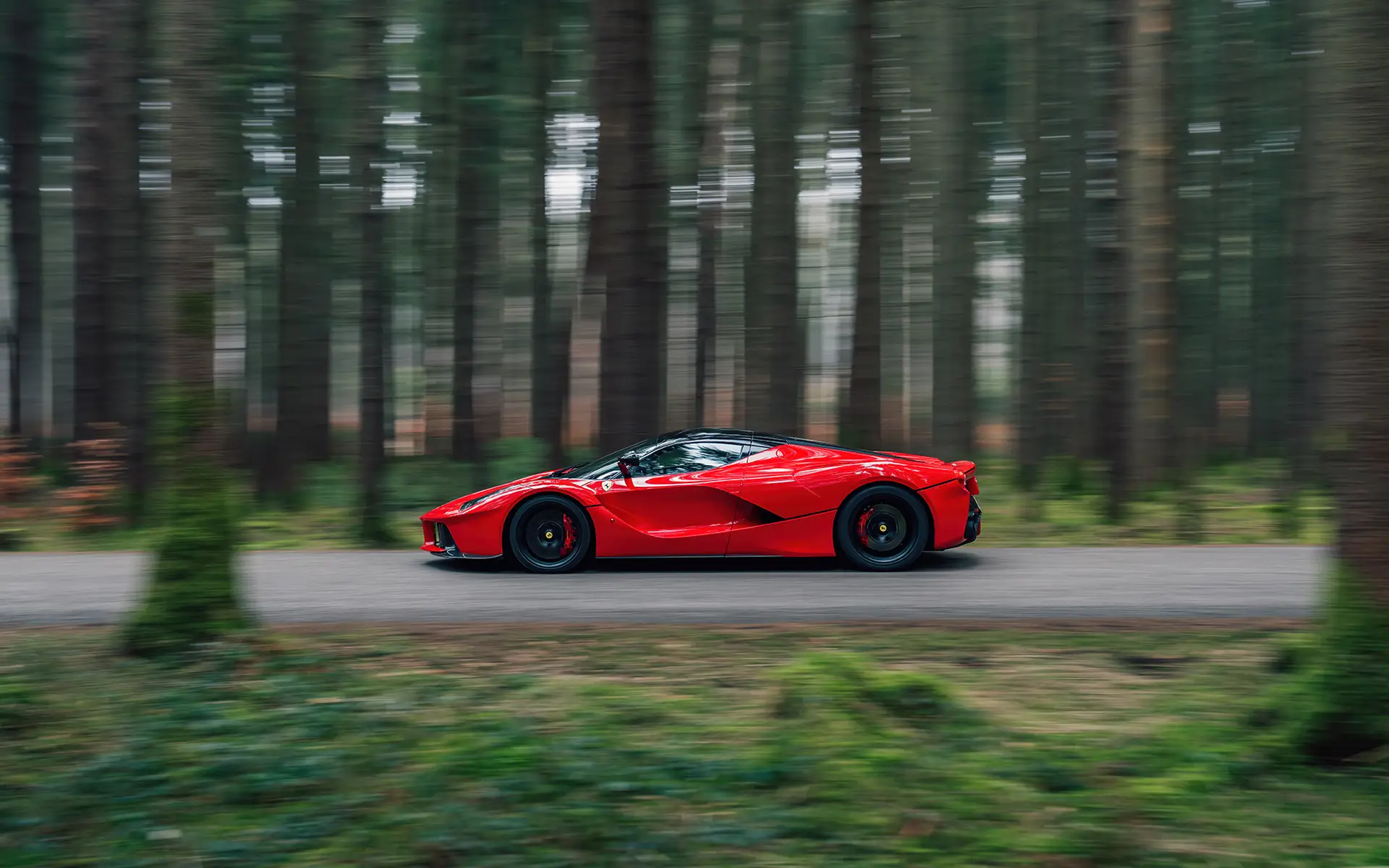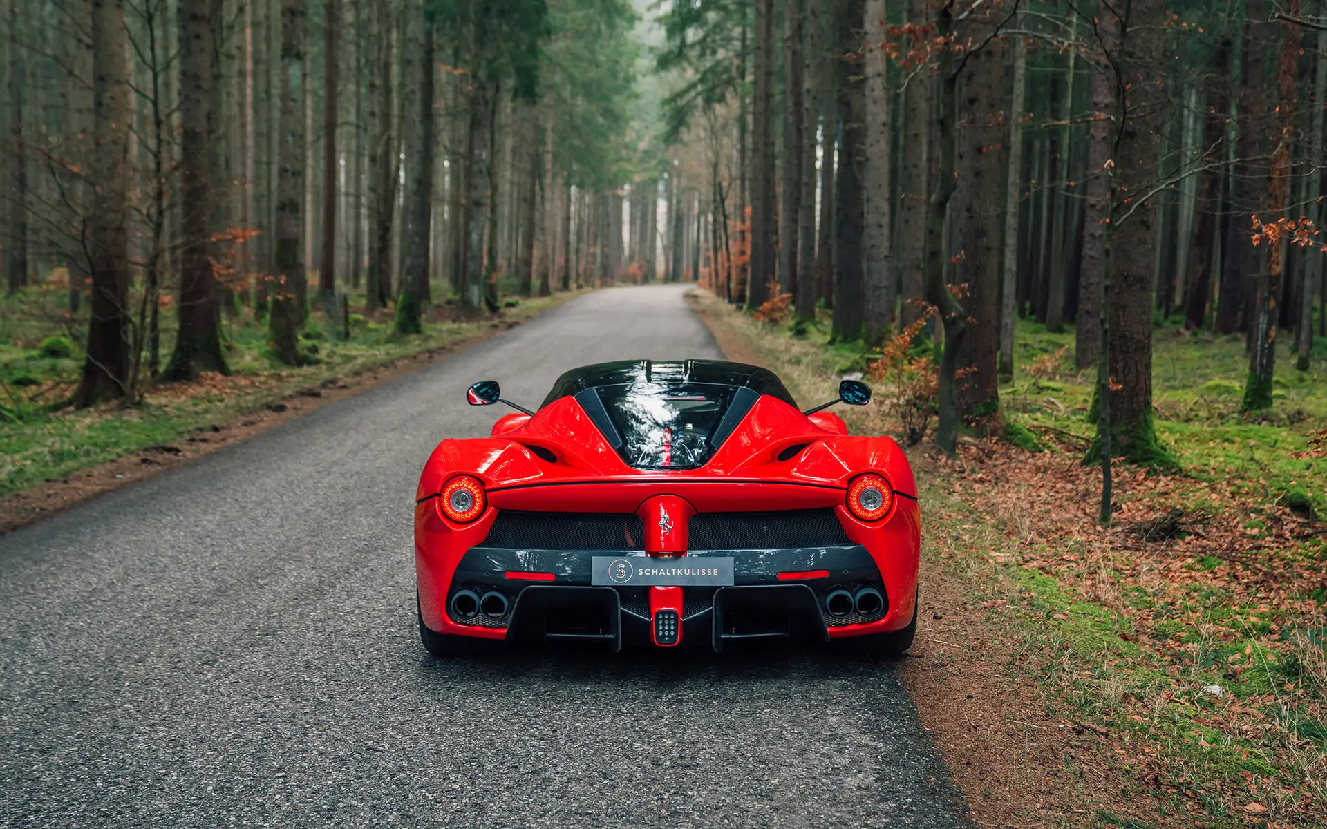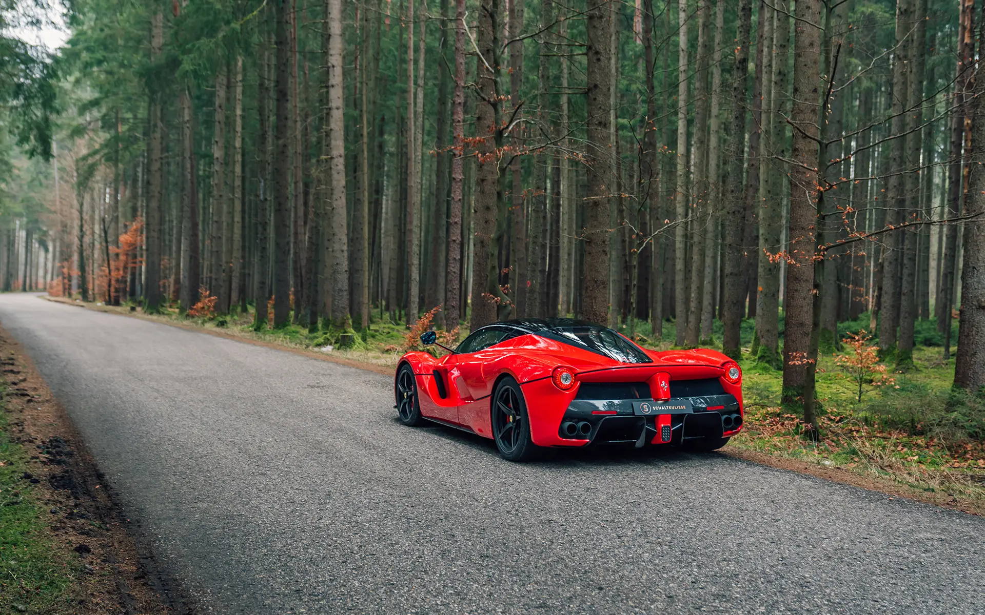 Our car is a German-delivery car that was supplied new to Maranello Motors in Cologne in March 2014. It was specified by its first German caretaker in Rosso Corsa over a Nero roof, a full black Alcantara interior with red stitching, and with otherwise every single possible carbon fibre option. The black five-spoke wheels together with the red brake calipers make for a coherant and simply striking specification. The first owner registered the LaFerrari in Germany and accumulated around 4,500 km on the clock before deciding to sell it to the next German owner in September 2022. At the time of acquiring the car, the current owner decided to book the all-important Ferrari Hybrid Battery Warranty, which covers any problem with the battery for the next two years. Under the ownership of its second owner, the LaFerrari drove further 250 km, making the current total mileage just below 4,750 km.