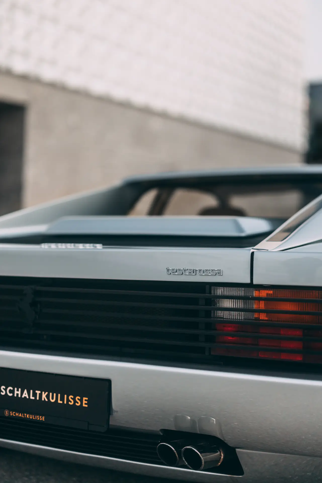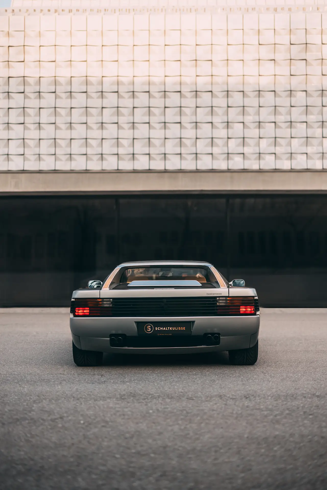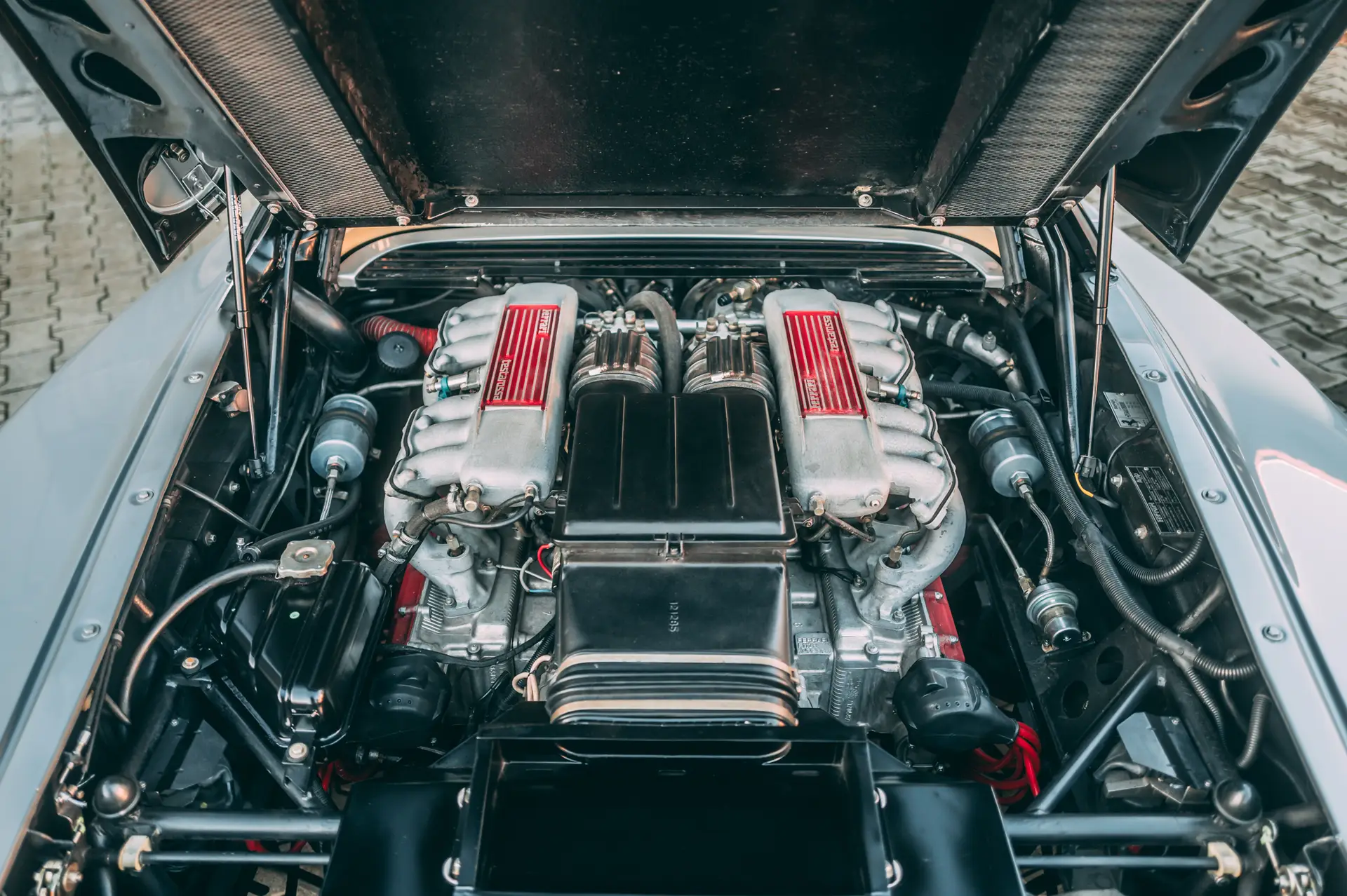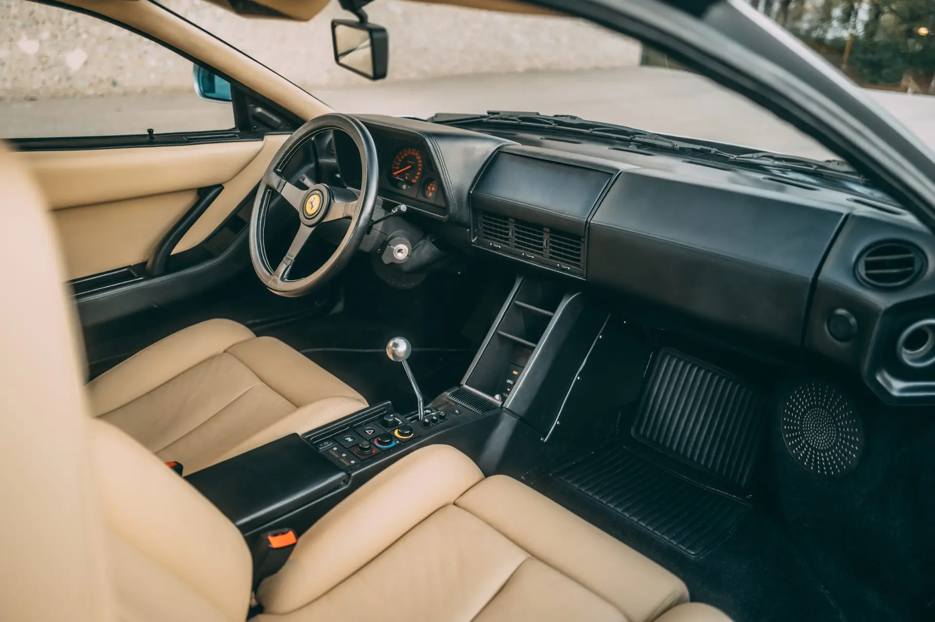 Our example is one of those few early Monodado version, the second iteration of the Testarossa, which sports the iconic center-lock wheels and both side mirrors, as opposed to the Monospecchio specification with a single side mirror. It is finished in the elegant specification of Argento over a Crema leather interior, and it was delivered through Garage PARISE in Vicenza, Italy, in March of 1987 to its first owner, also resident in the city of Vicenza. The Testarossa was serviced by official Ferrari workshops around Vicenza and Verona in the first few years, showing that our car accumulated most of its miles in the first six years of its life. More recently, over 25,000 EUR was invoiced by Schaltkulisse Engineering for servicing and preparing the silver Ferrari, making sure that the car performed flawlessly after a long period of storage in a French collection. The engine benefitted from a full service including belts, fluids, and spark plugs, and the braking system was completely overhauled, as well as the suspension elements to eliminate any play during driving. The bonnet struts were replaced, new tyres were mounted, and the seats were retrimmed in the original leather and color to the exact factory specification. Totaling just under 63,300km today, our Testarossa comes with its original stamped service book, pouch with owner’s manual, car cover, toolkit, and a cancelled French “Carte Grise” document.