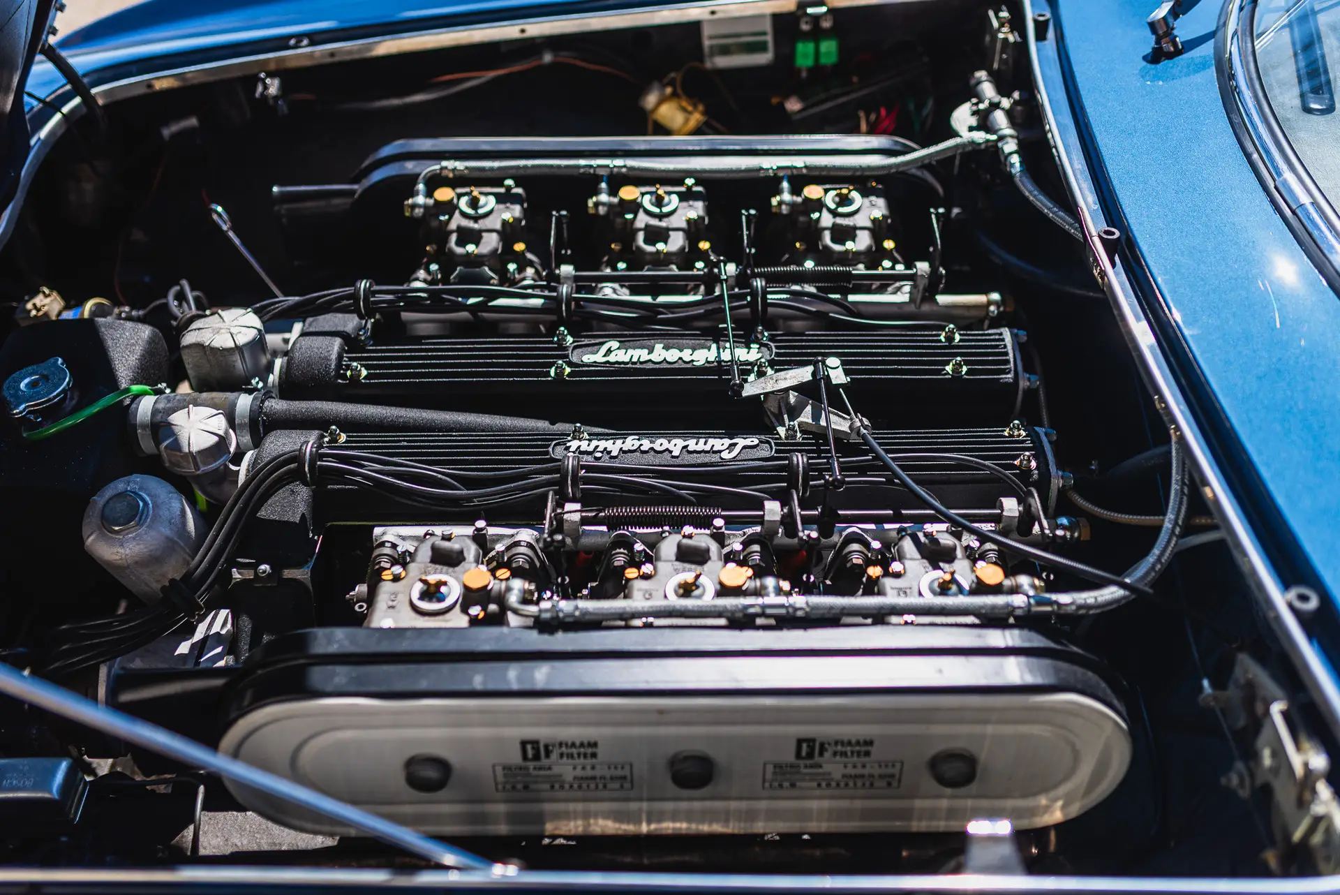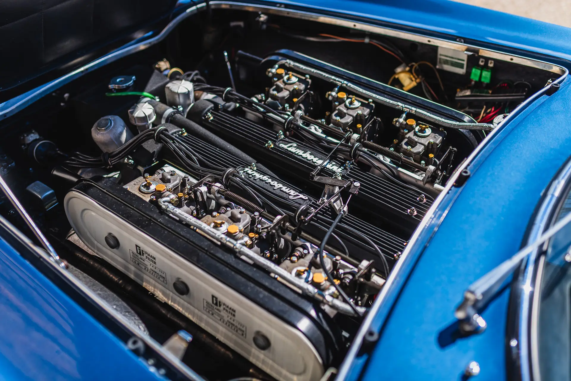 At its heart, the 400 GT 2+2 was powered by a 3.9-liter V12 engine, an evolution of the 3.5-liter unit from the 350 GT. This sophisticated powerplant, engineered by Giacomo Alfieri, produced 320 horsepower, allowing the car to reach a top speed of approximately 250 km/h (155 mph). Paired with a five-speed manual transmission developed in-house by Lamborghini, the drivetrain offered smooth power delivery and engaging driving dynamics.