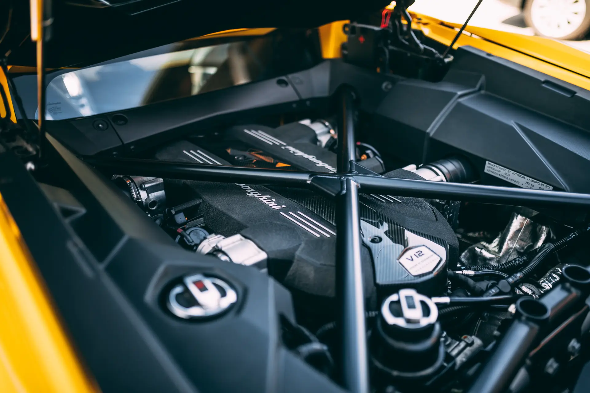 In 2017 the bull with 12 horns from Sant’Agata got its big brother, the “Aventador S” was presented. In addition to 40 hp more power and a few aerodynamic changes, another highlight was the active rear axle steering, which was used for the first time in the Aventador series. Our “S” painted in pearl effect “Giallo Orion” was delivered via Lamborghini Vienna. The list price of around € 285,000 was supplemented by the following special equipment with a value of almost € 30,000 and includes, among other things: