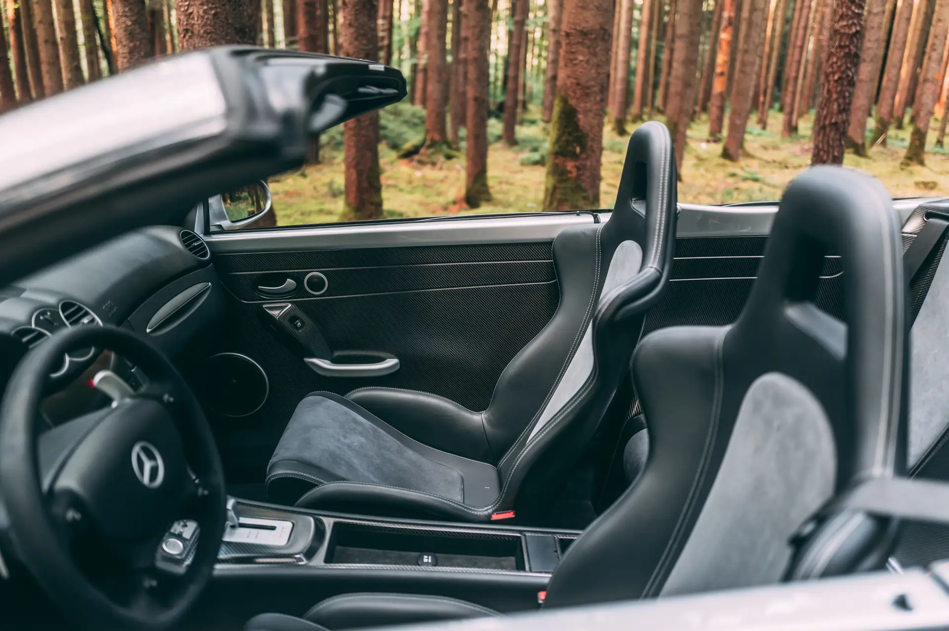 The example presented here is one of the 80 Roadsters made, delivered new to Slovakia to its one and only owner in April 2007. Finished in Brilliant Silver Metallic on a Black/Grey interior, it has only covered 9,650km since new, and has a very complete service history uniquely at a Mercedes-Benz dealership: