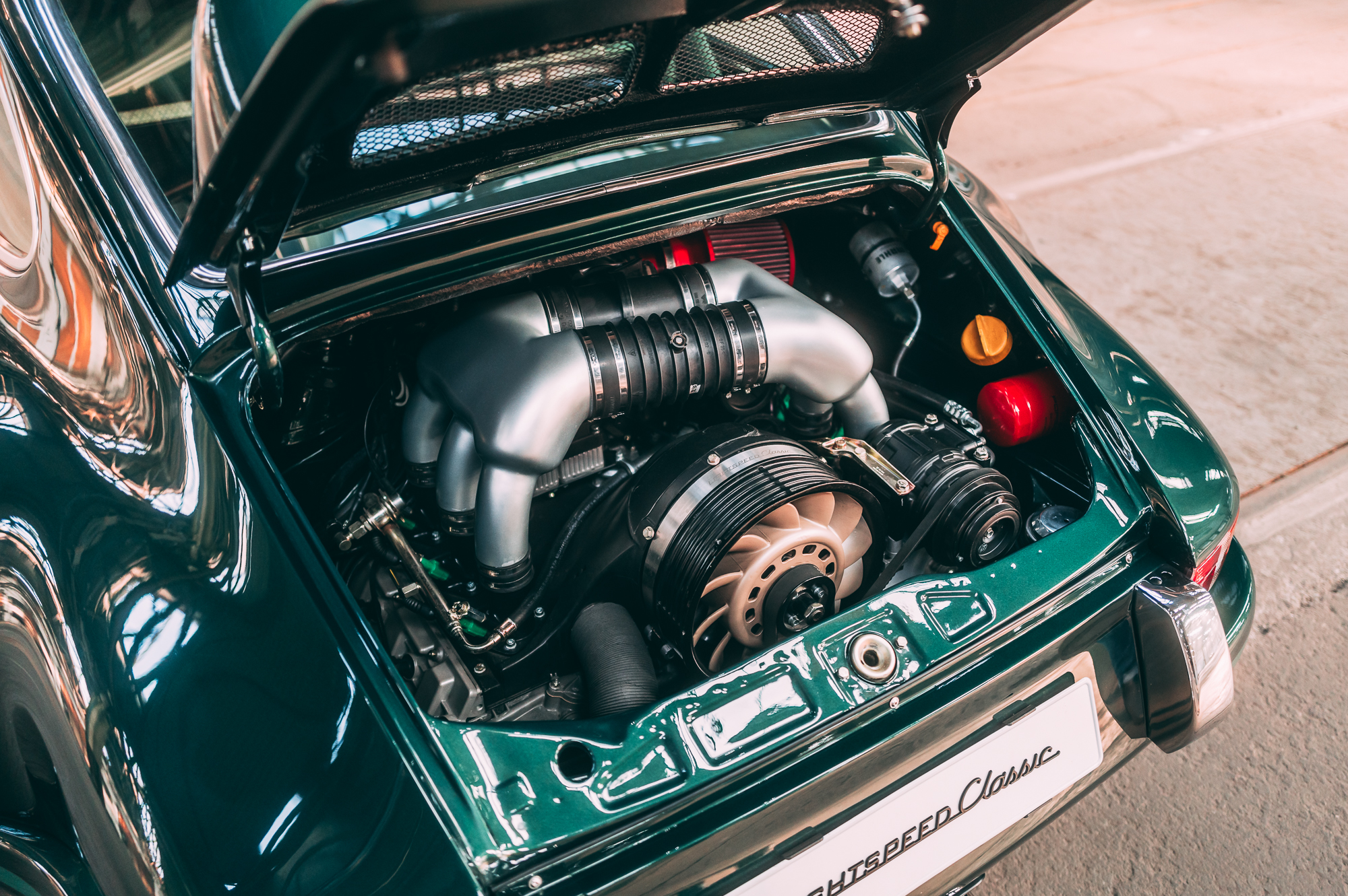 The centerpiece, however, lies in the engine bay: a 3.8-liter flat-six built to RS specification, producing approximately 335 horsepower. Enhanced with 3 mm motorsport camshafts, optimized intake pathways, and reinforced valve springs with retainers, it delivers the character of a race car in the shape of a refined classic. And while every car embodies the highest levels of craftsmanship and engineering expertise, it is also priced competitively against many new resto-mods that cannot claim the same depth of experience behind their creation.