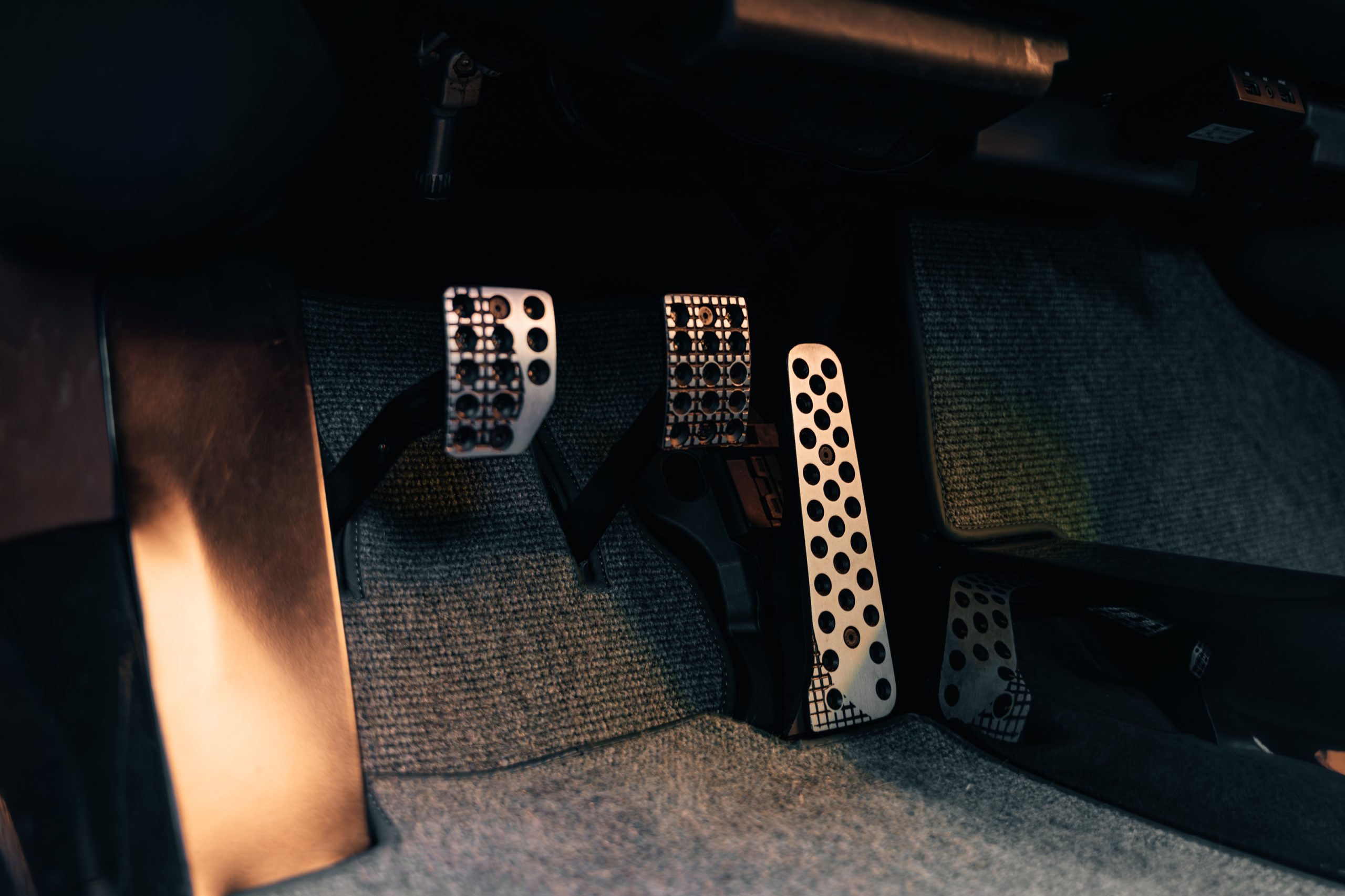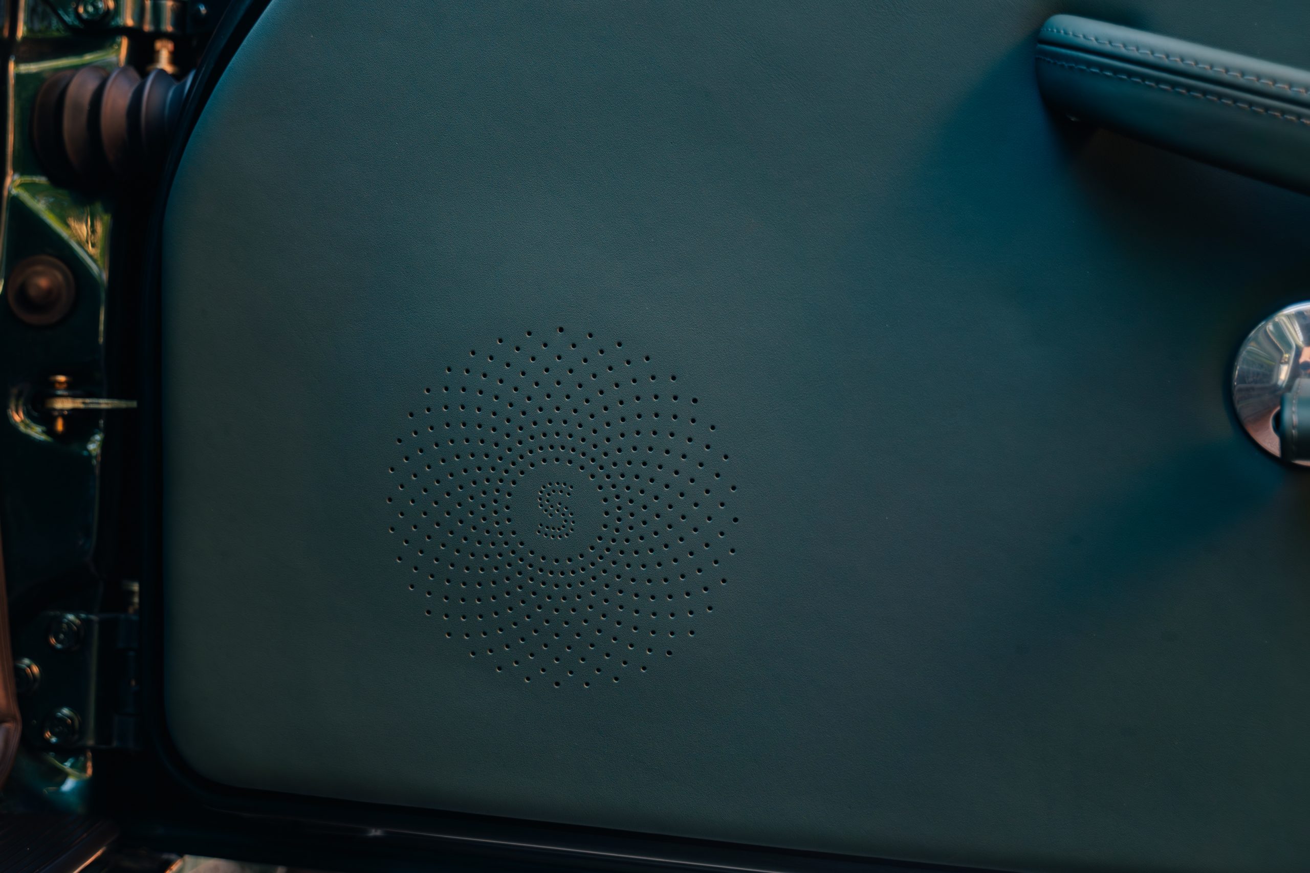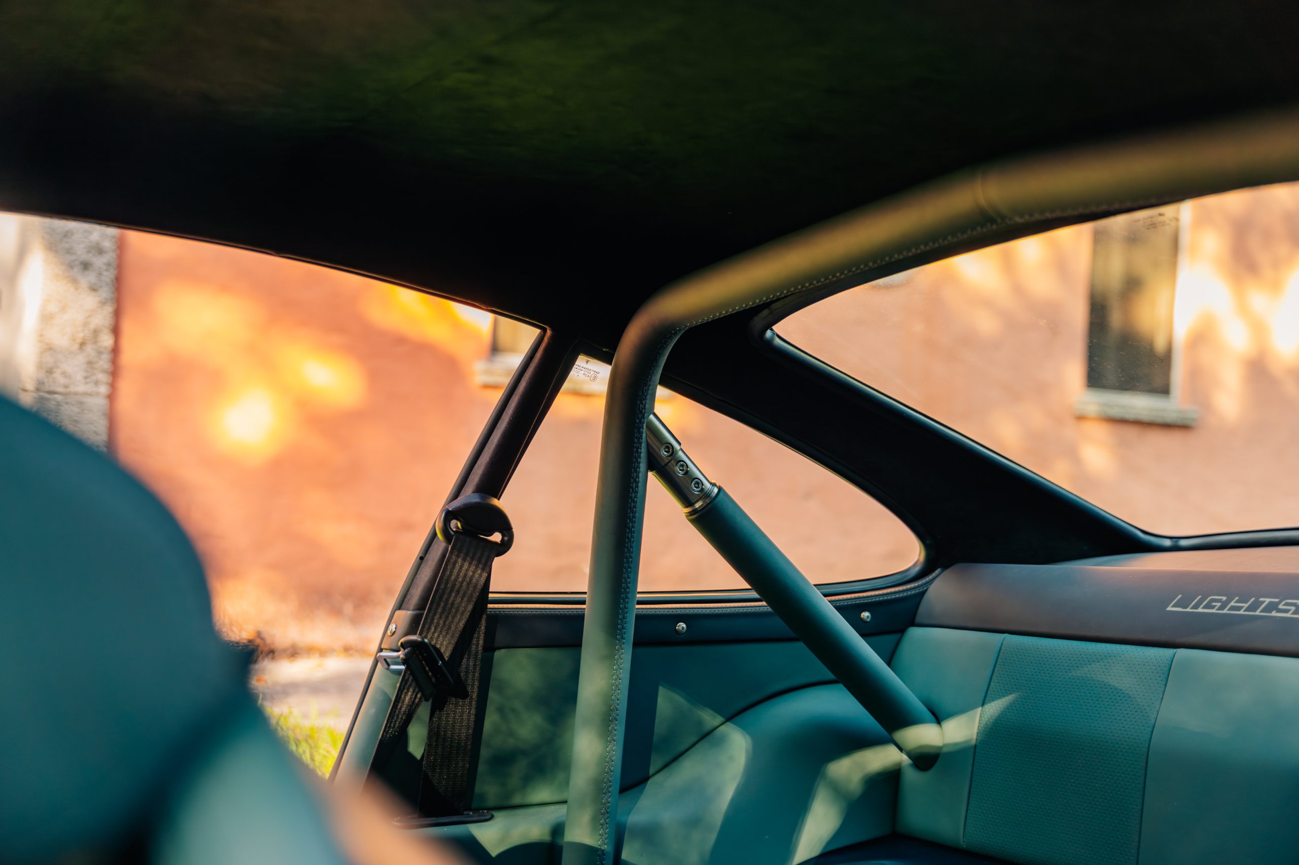 The exterior is finished in Porsche Racing Green Metallic, chosen to echo our company color and inspired by a client’s newly acquired 911 GT3. The interior continues this theme with green leather upholstery, complemented by a leather-wrapped roll cage and integrated speakers. Lightweight construction played an essential role: the rear lid, roof, and both front and rear fenders are made of carbon fiber, reducing weight without compromising strength. Inside, a precisely machined metal short shifter provides a direct and mechanical connection, making every gear change a tactile experience.