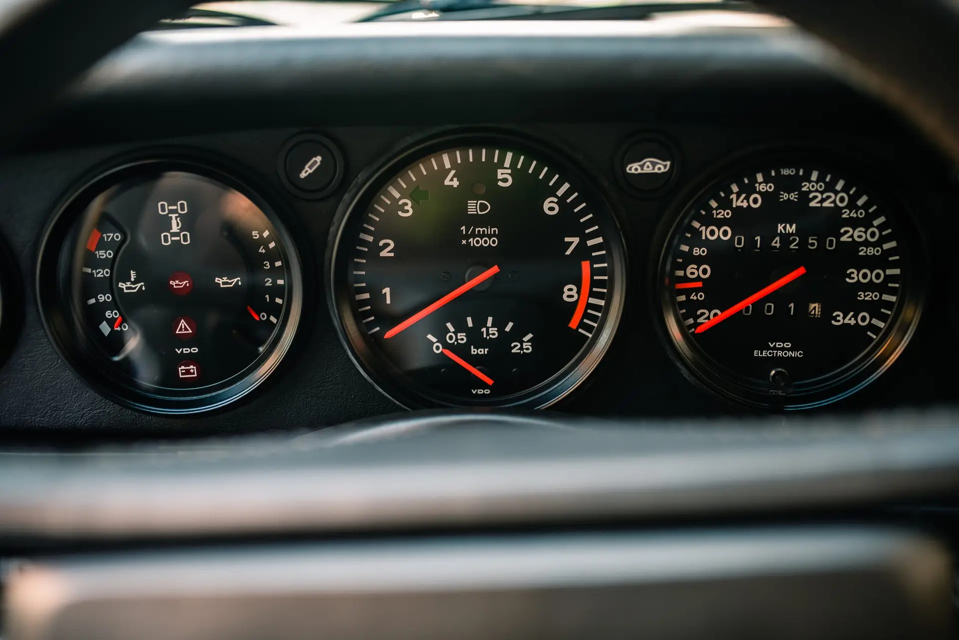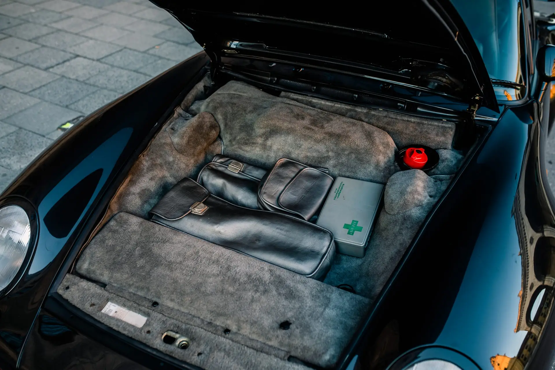 Our example was invoiced to the first and only owner until today on the 11th of January 1988. The original invoice from the factory is shwoing a total price of 420.000,00 Deutsch Marks which was an incredible high price at the time. Options include Graphitgraumetallic paint, Sport seats, seat heating, alarm and Code C00 which means german specification. Pictures from the first owner with his wife taking delivery of the car from the factory are also part of the outstanding documentation Chassis 900047 takes benefit of as well as the origianl Porsche 959 book, the Prototype pictures and the Reparaturleitfaden. Completed by the original books, service book and tools this 959 is missing not one piece as it was delievered in 1988. First registered on the 14th of January in 1988 in Augsburg, Germany on number plate A-AA 959, Chassis 900047 retains the same registration plate until today. Since then it was treated very caring, maintained and driven occasionally up to 14.250km. Never receiving any kind of damage the car was driven less in the later years and finally stored approximately 10 years ago.