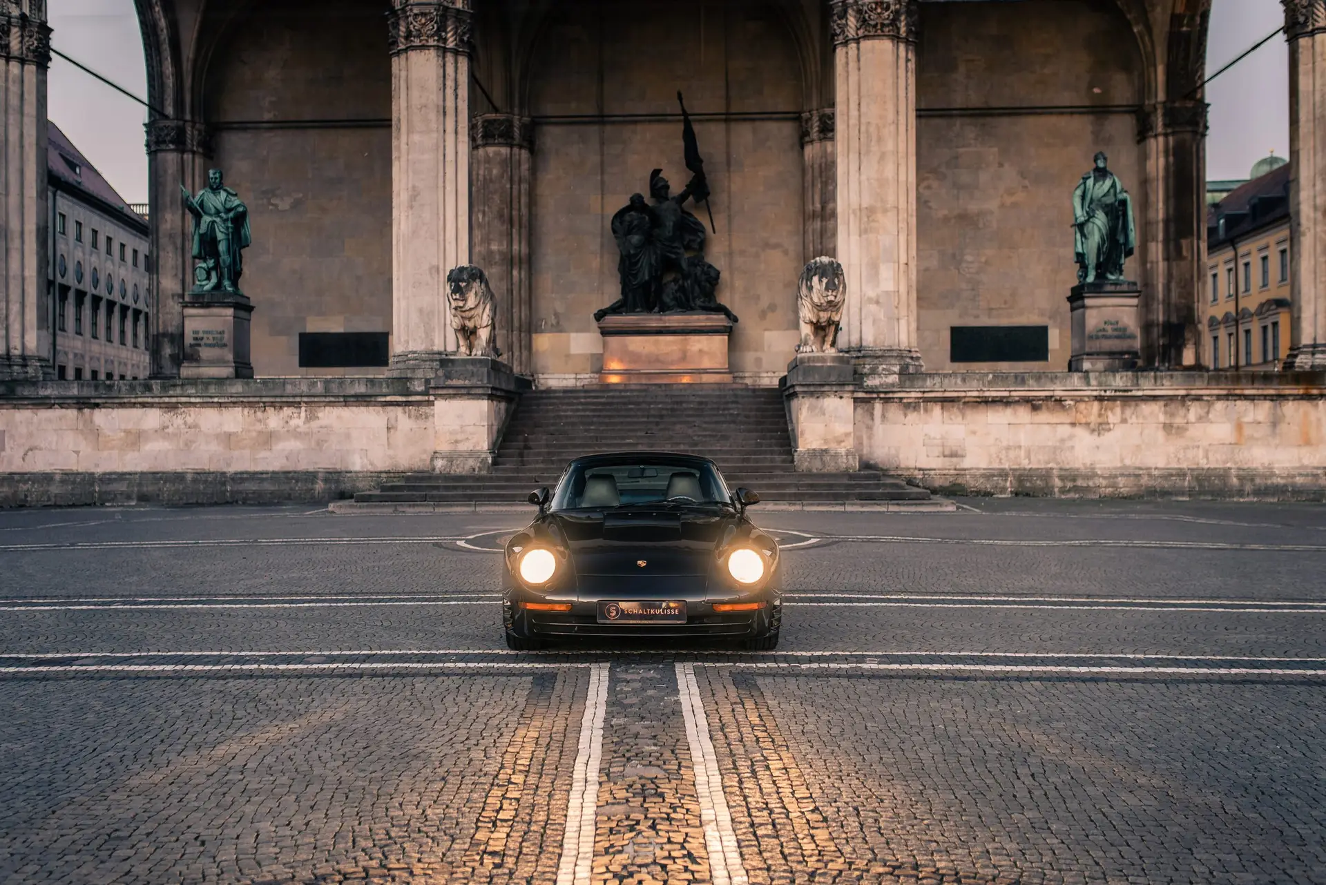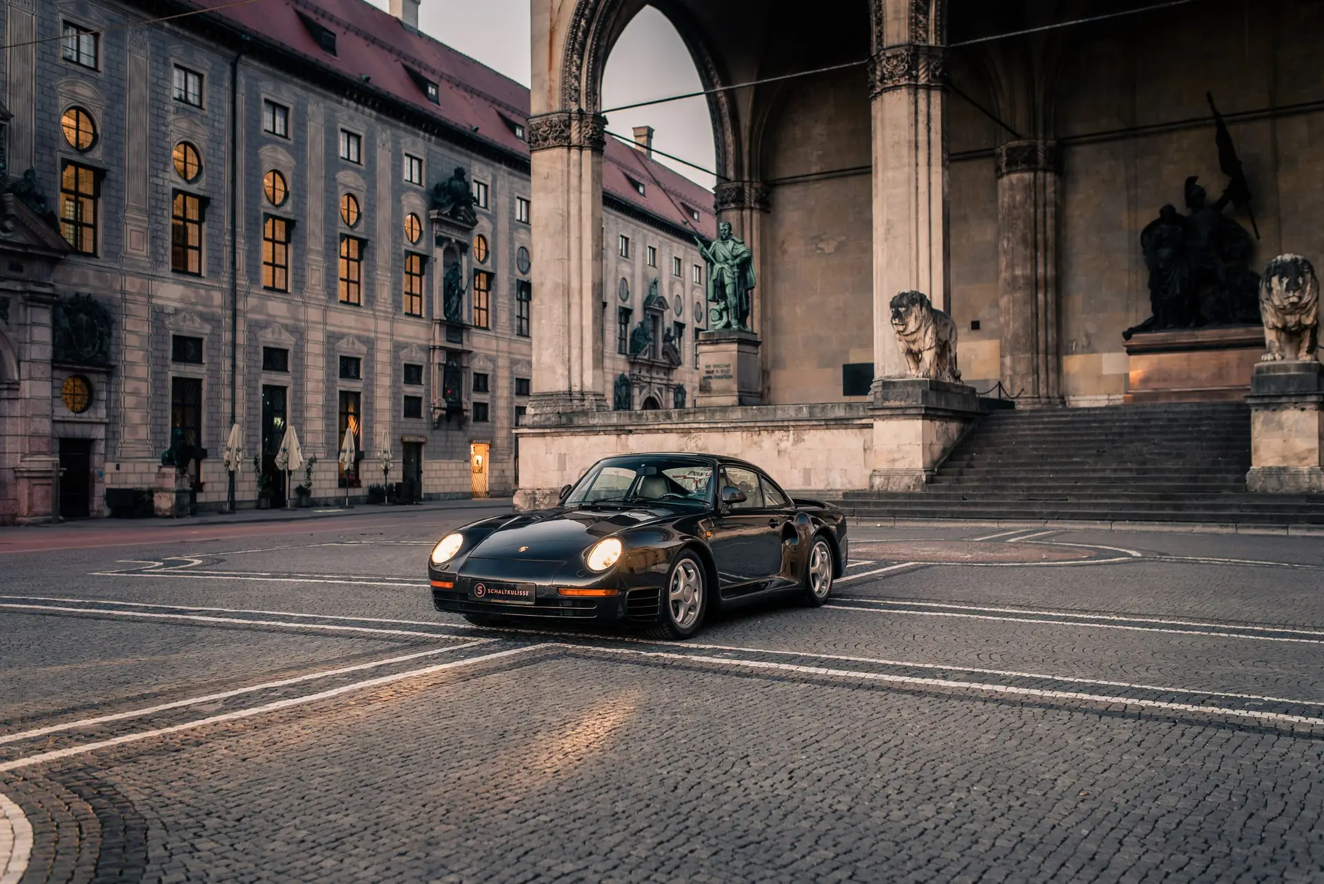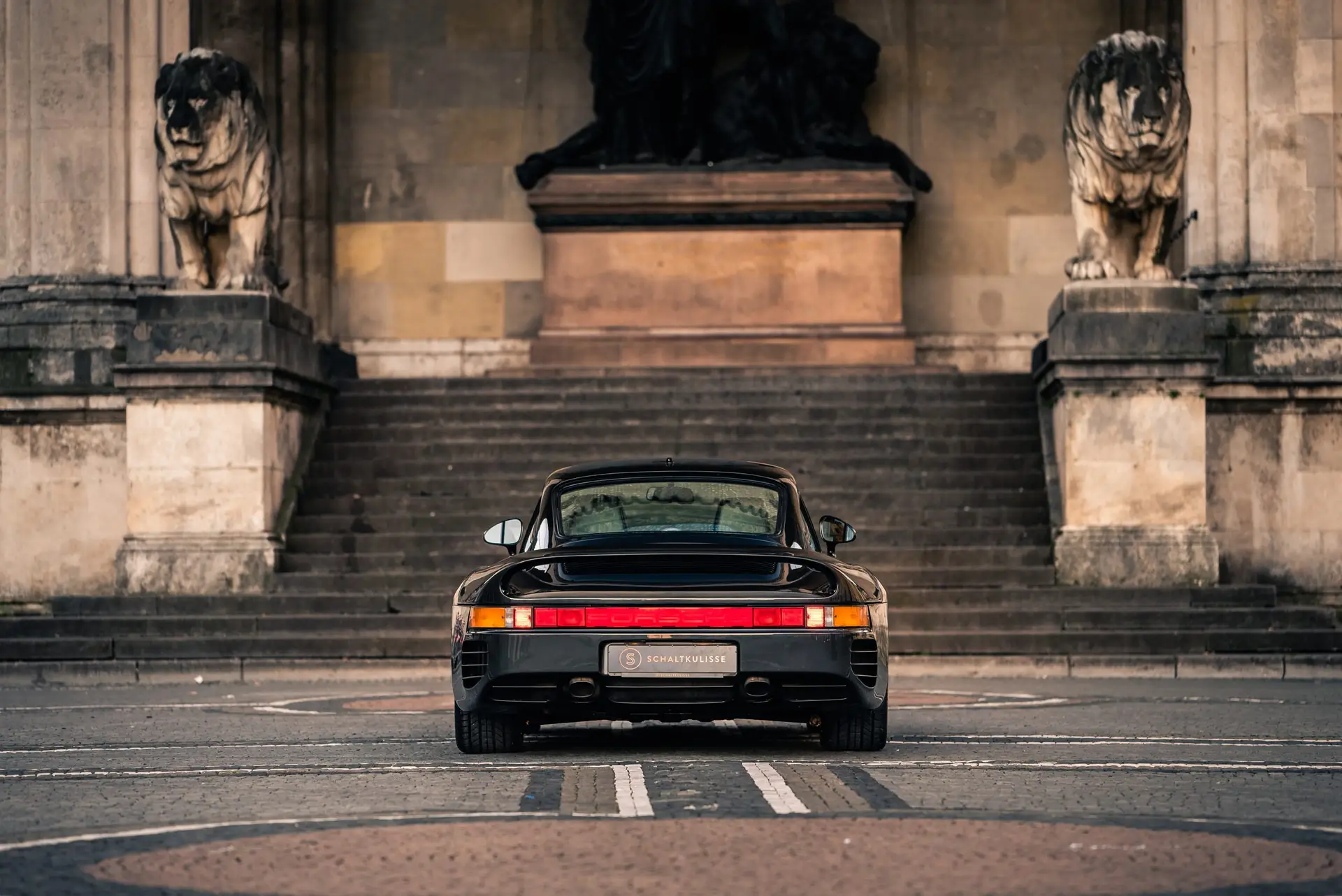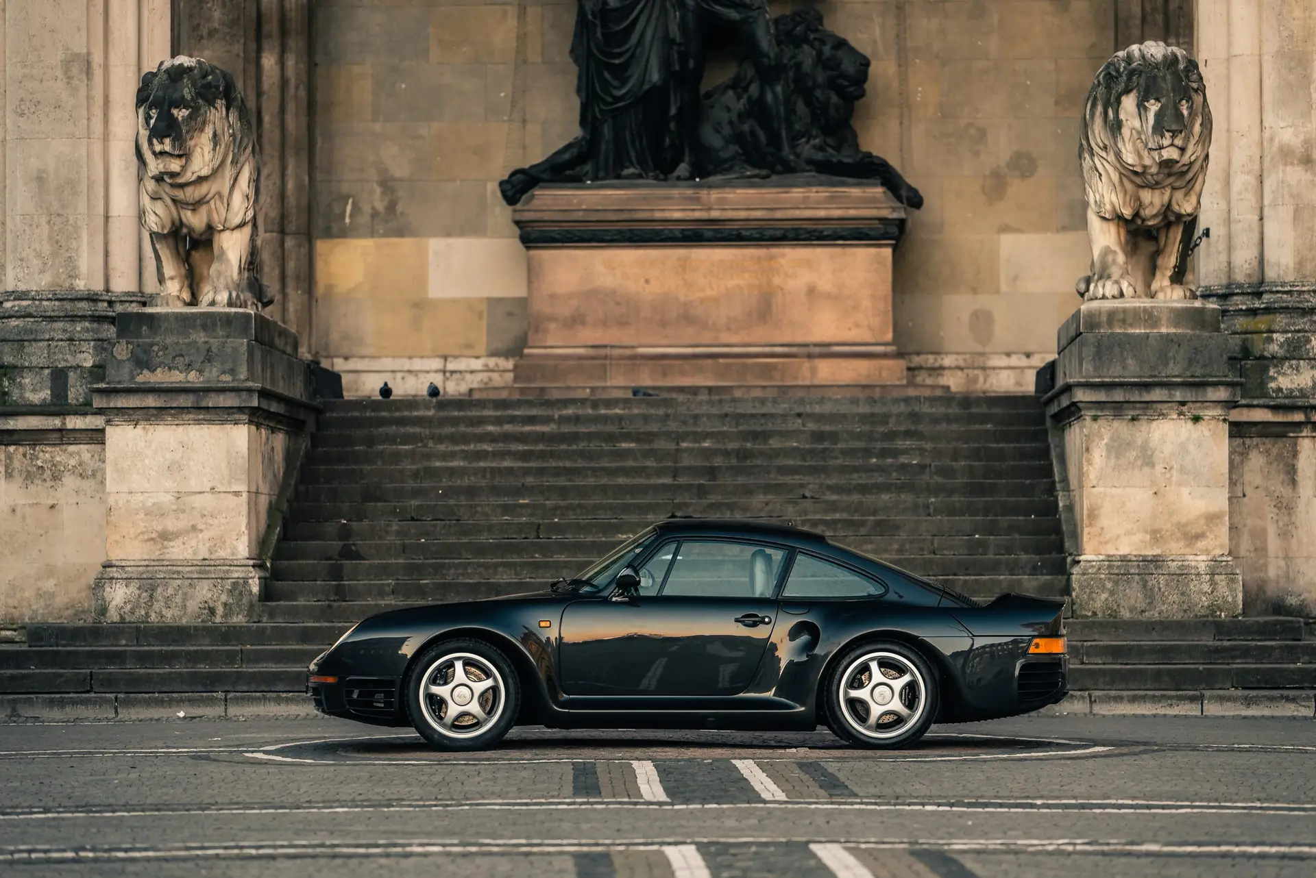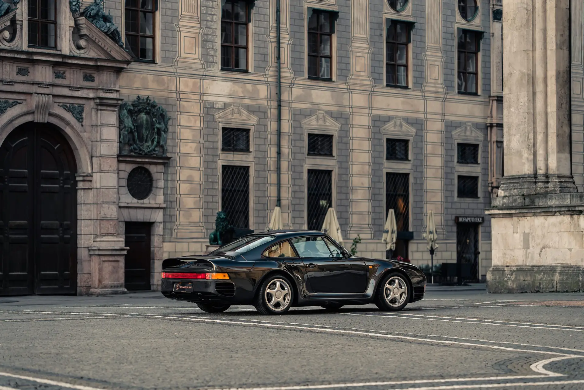 Presented to the world in 1986 the Porsche 959 was immediately the bench mark in the world of supercars and the fastest road registered car of its era. It was a stunning machine and a „poster car“ for a whole generation with the Ferrari F40 as its biggest rival. The technology installed was outstanding progressive with endless new features like for example the electronically adjustable ride height and shock damping, two asymmetrical turbochargers with a small one to establish low end boost while the second one starting at 4.500rpm to support the 2.85 liter air-cooled six cylinder engine at higher speed and the Porsche-Stuer_Kupplung which allowed the driver to vary the the torque between front and rear axle, all electronically. Production numbers vary but with a total number of around 300 cars produced the Porsche 959 is by far rarer then many supercars of the younger era.