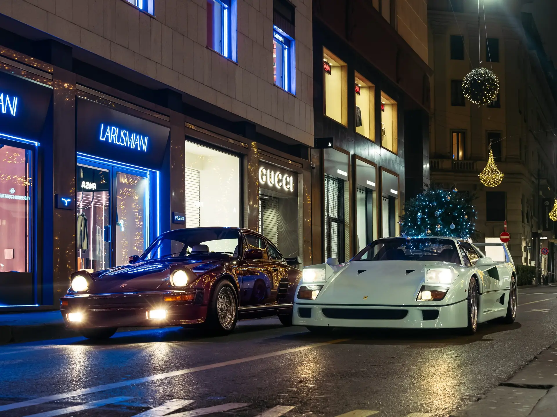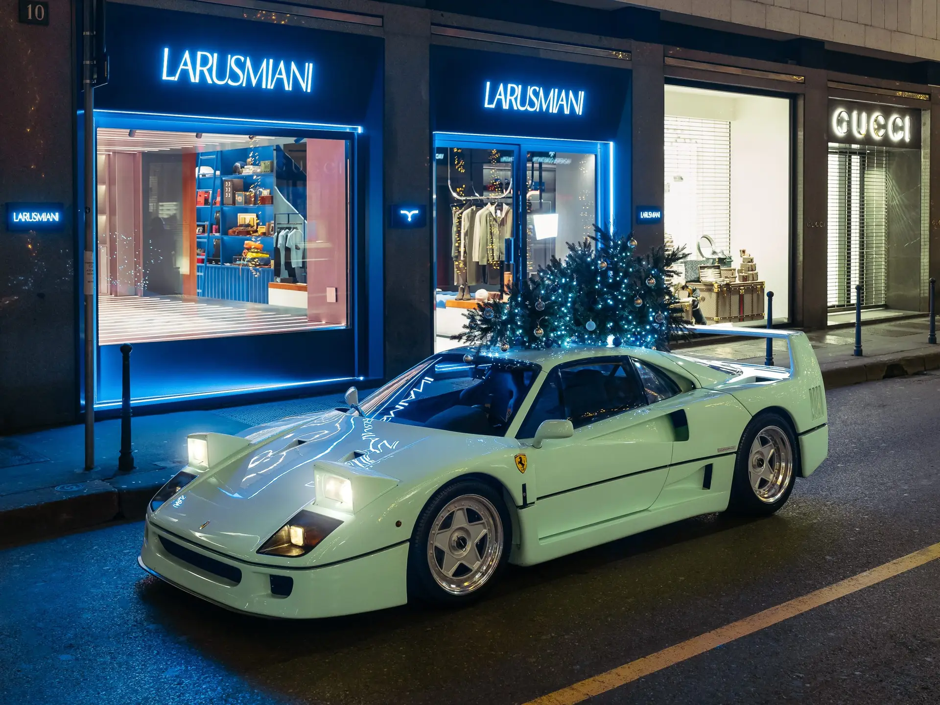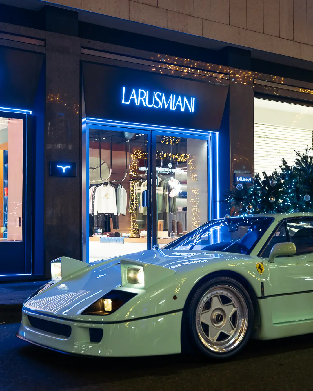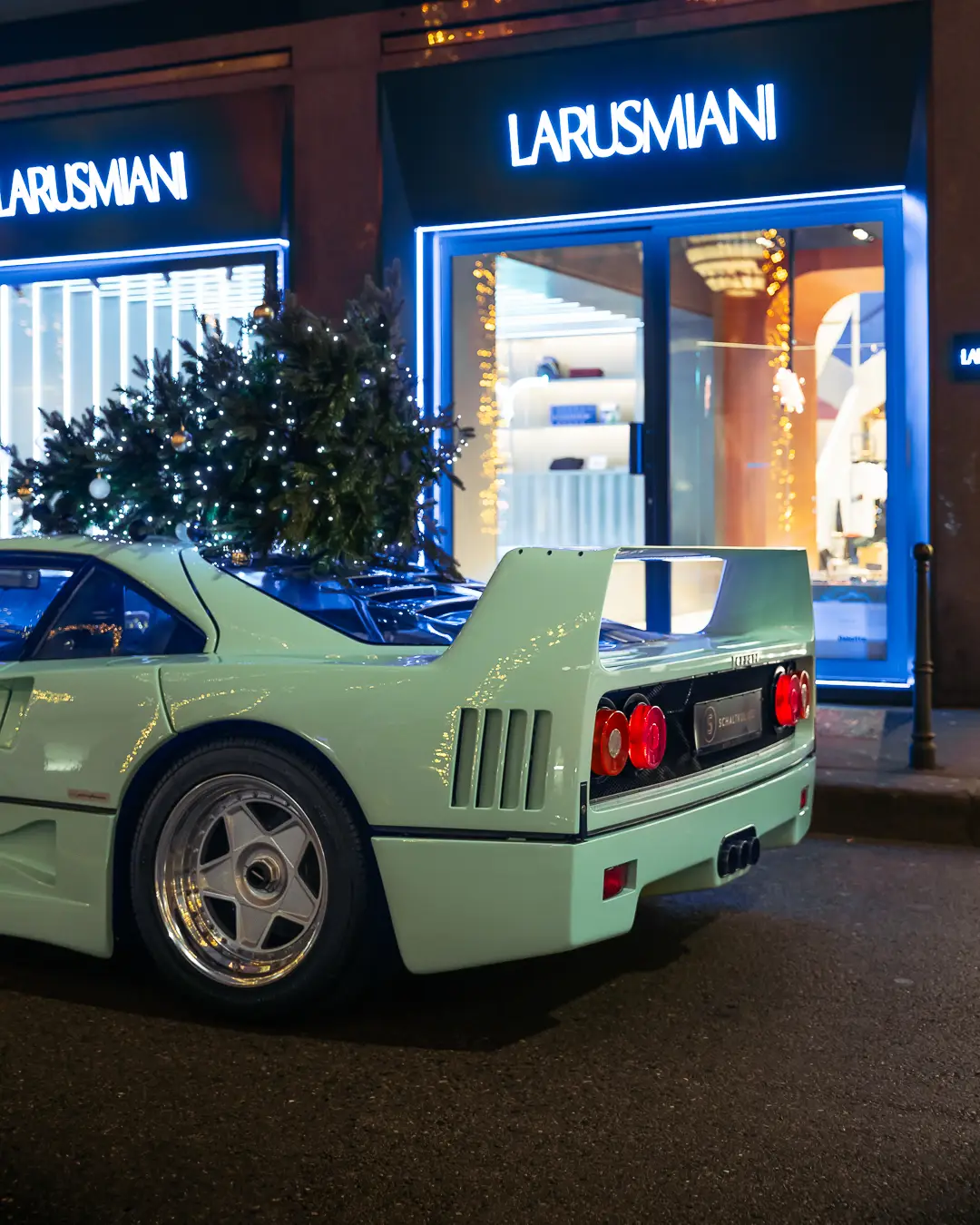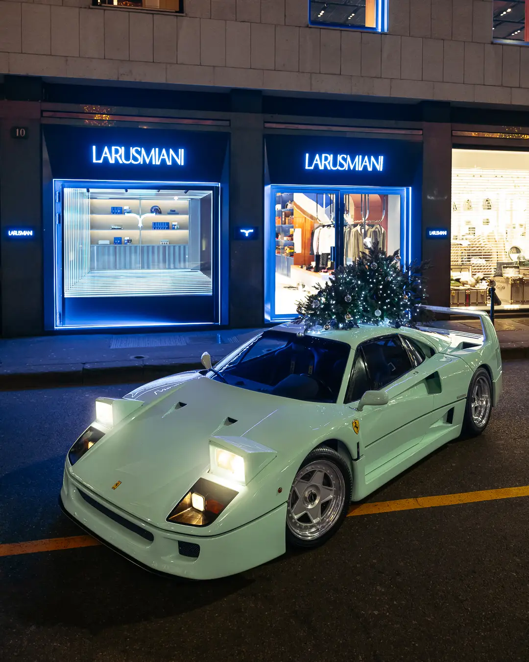From the moment we presented the green F40 to the world in April 2023, the Ferrari has received a huge social media coverage, which encouraged us to drive the car even more and thus share it with more enthusiasts. Thanks to our friend Guglielmo from LARUSMIANI, we are able to display it here in Milano at The Automotive Gallery of LARUSMIANI, for you all to enjoy. Feel free to tag us and LARUSMIANI in your social media posts and stories. The F40 will be displayed at LARUSMIANI until the 15th of January 2024.