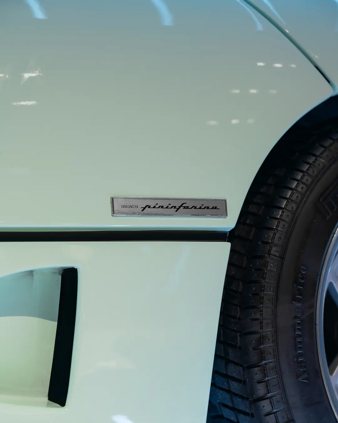 Called Verde Pallido, the shade has been updated by Ferrari through the years to change from a slight yellowish green to a more blueish colour, which earned our F40 the name “Minty Forty” by its many fans and followers. To complement the light green exterior, we decided to give another nod to Ferrari’s racing legend by opting for a blue fabric interior.