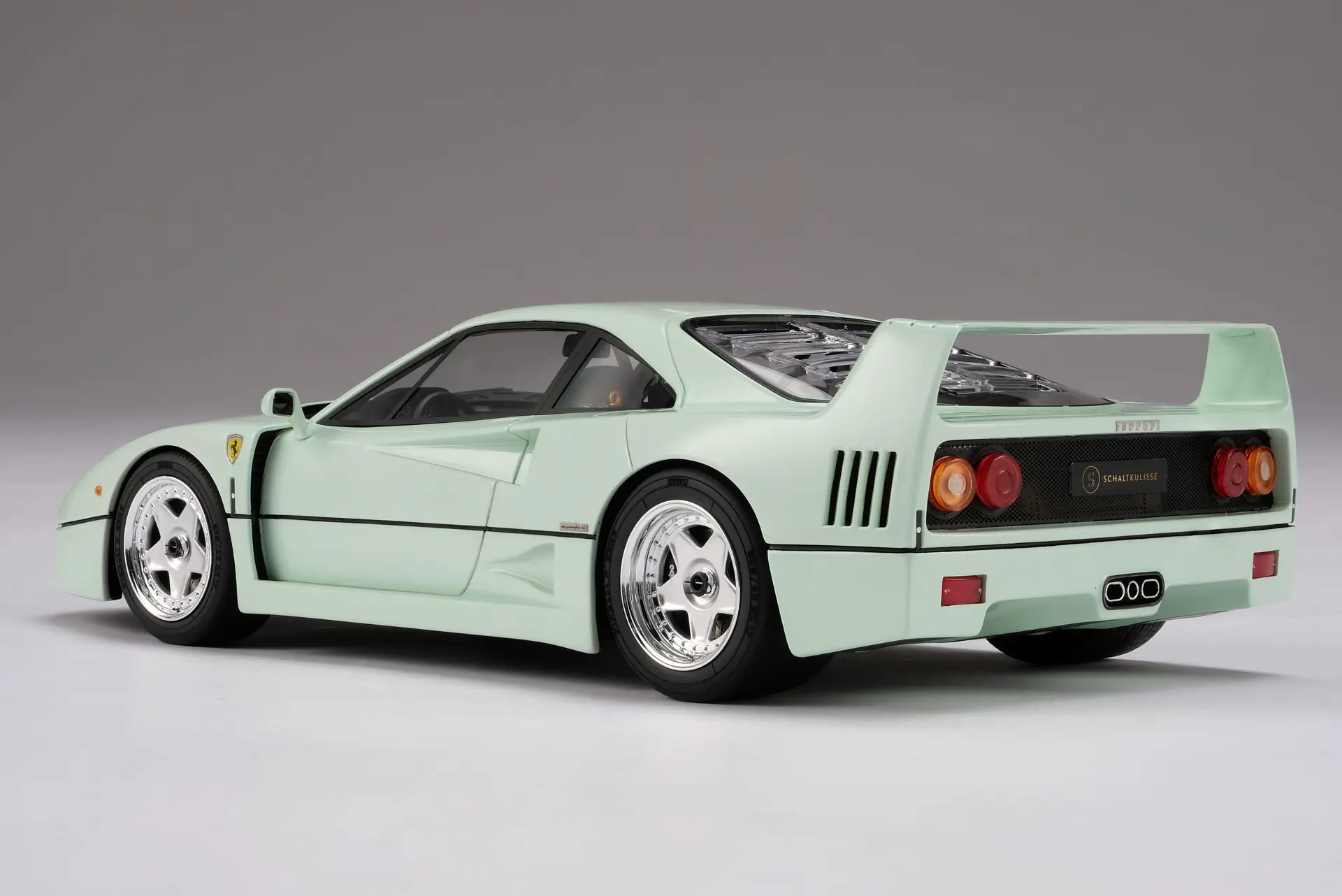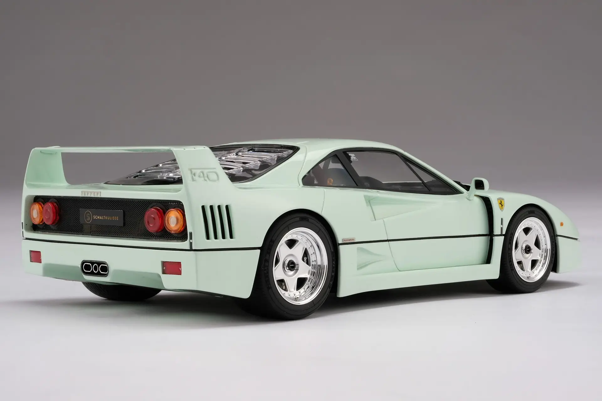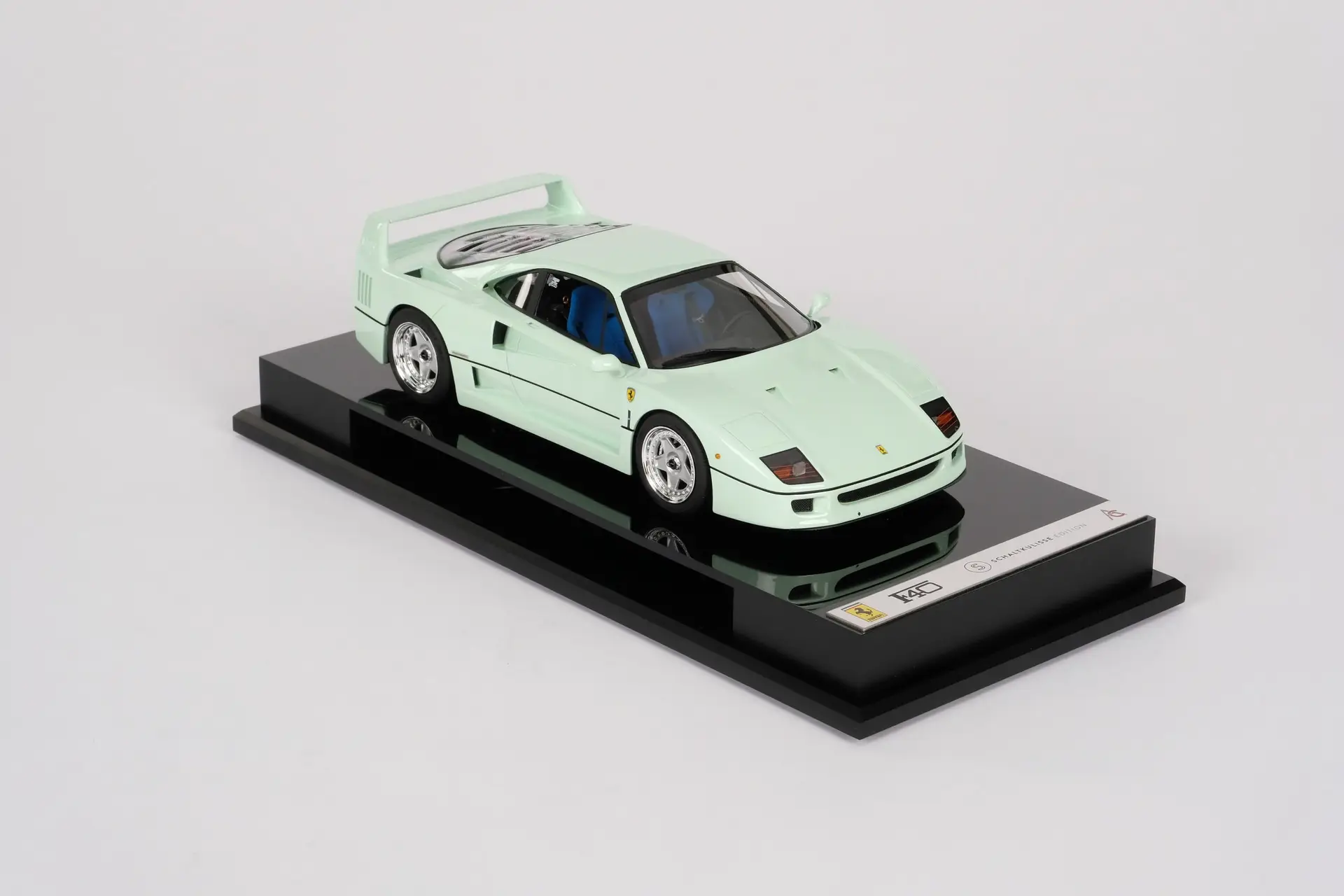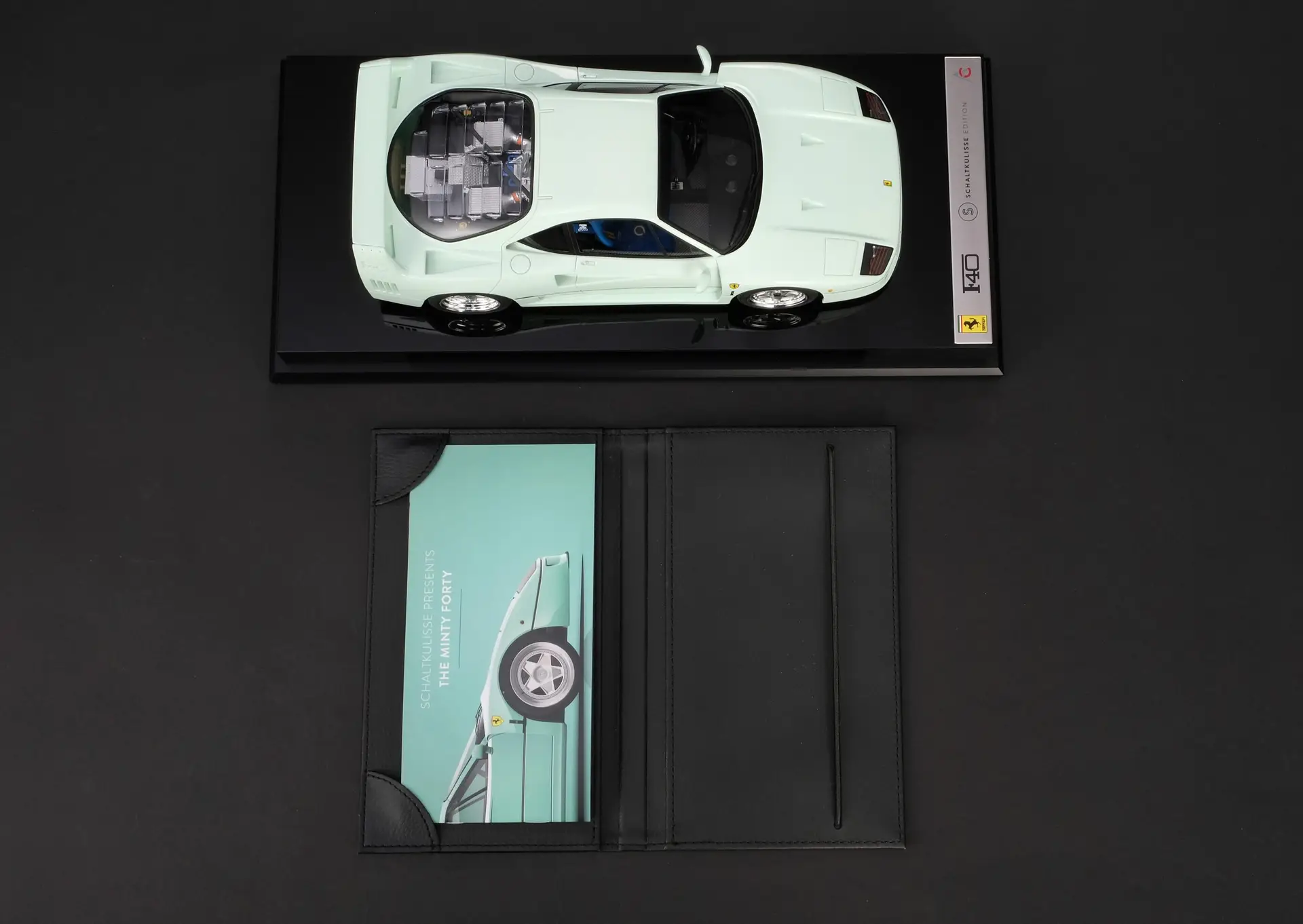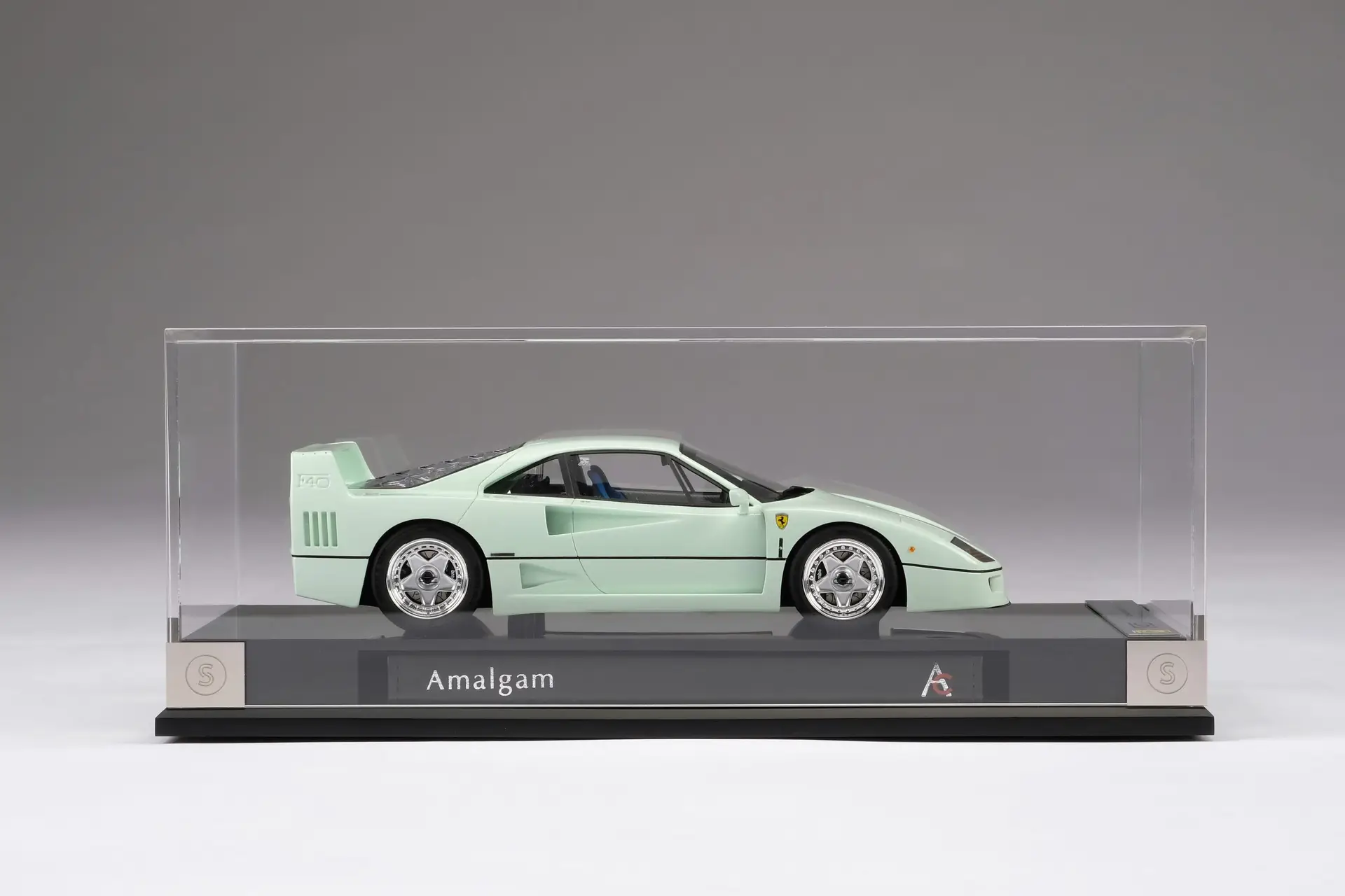In collaboration with the leading scale model manufacturer Amalgam, we have developed a homage to our iconic Ferrari F40, painted in Verde Pallido over a blue leather interior. By offering this very special accurate replica in scale 1:18, limited to 300 pieces worldwide, we wanted to make sure that our fans could own a piece of the Verde Pallido F40’s legacy. Made to the highest quality standards by the craftsmen at Amalgam, licensed by Ferrari, and accompanied by a premium display case as well as a descriptive booklet.